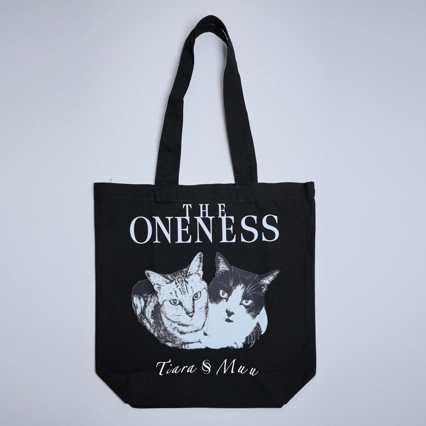 【予約品】THE ONENESS(ザ ワンネス)”犬猫保護活動チャリティー”Organic Cotton Tote Bag「Tiara&Muu」/BLACK