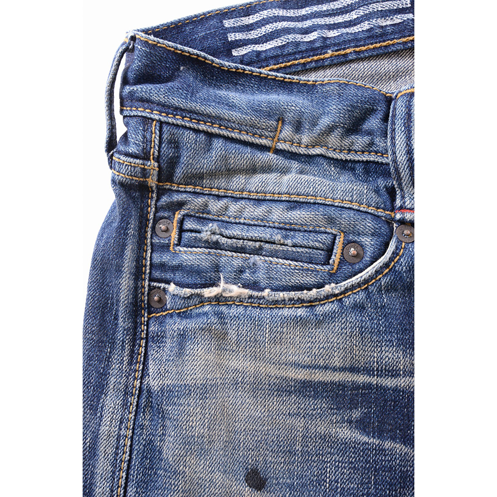 こちらは、ヴィンテージ感溢れる絶妙な色落ち感、茶身がかった色味、加工感を再現したデザインで、ネーミングの通り「ヴィンテージデニム」に敬意を表したデニムと言えます。
