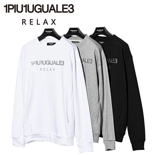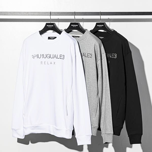 【SALE】1piu1uguale3 relax(ウノ ピゥ ウノ ウグァーレ トレ リラックス) RHINE STONE LOGO CREW NECK