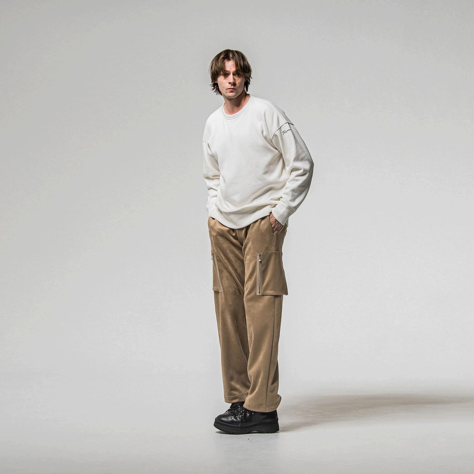 RESOUND CLOTHING(リサウンドクロージング) velours fleece thermal loose trainer/WHITE
