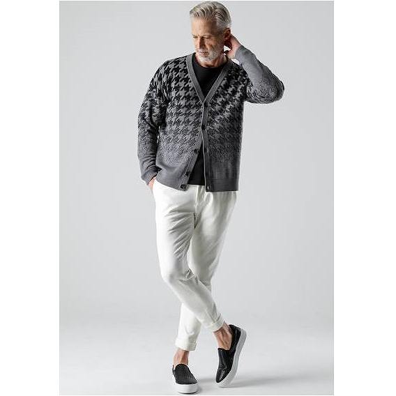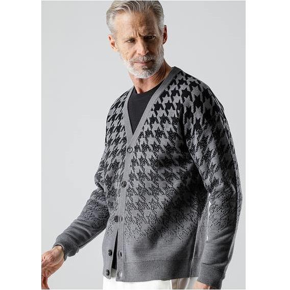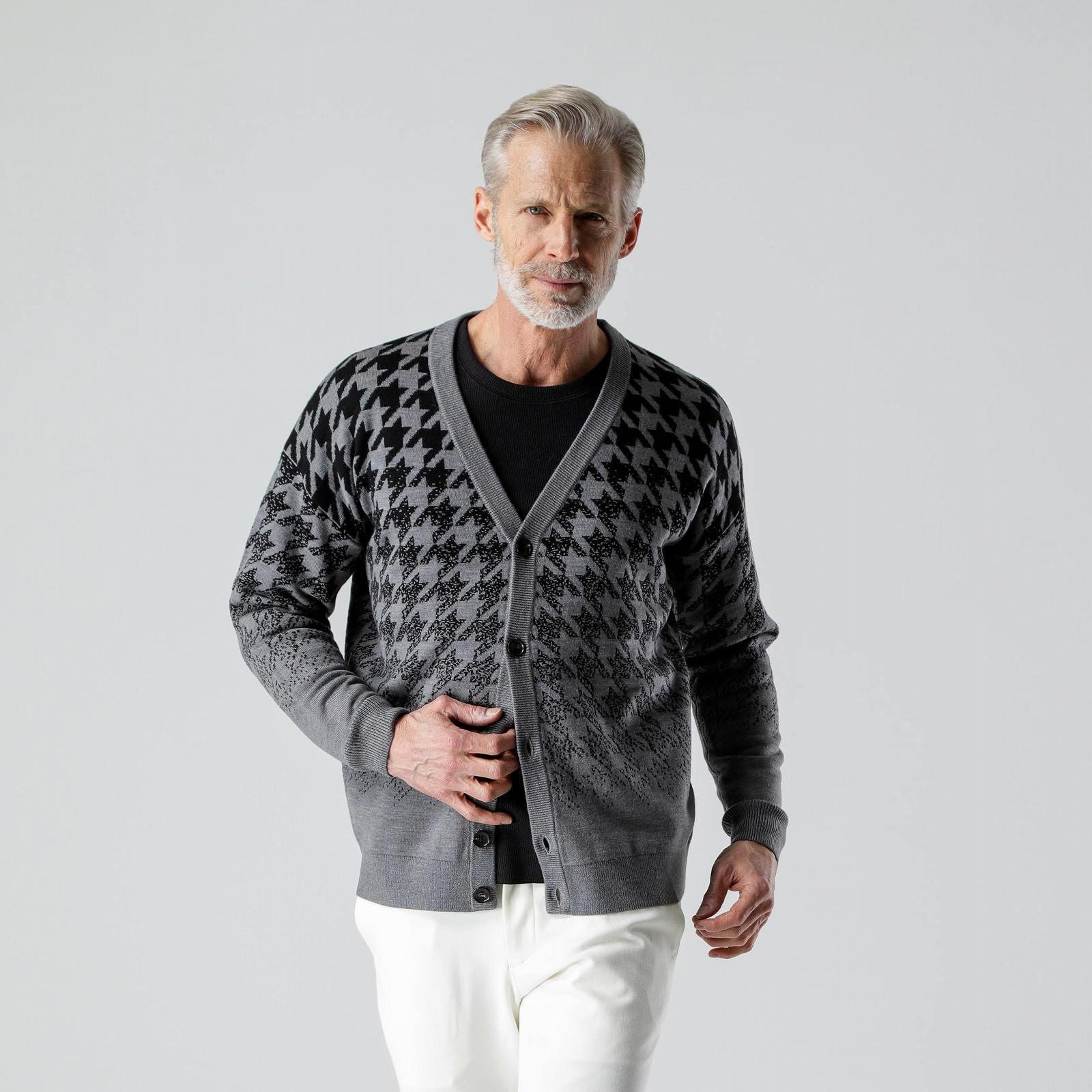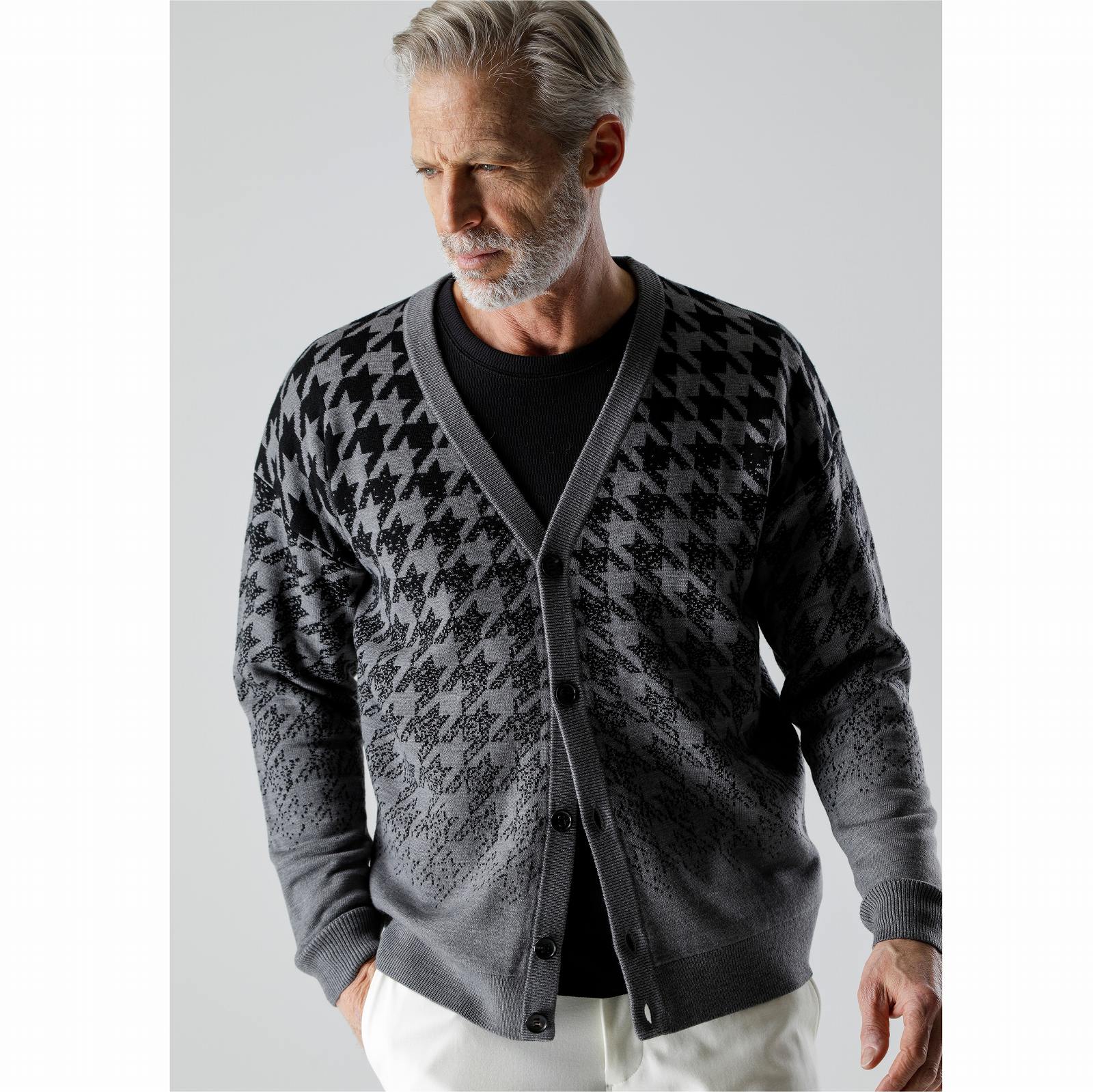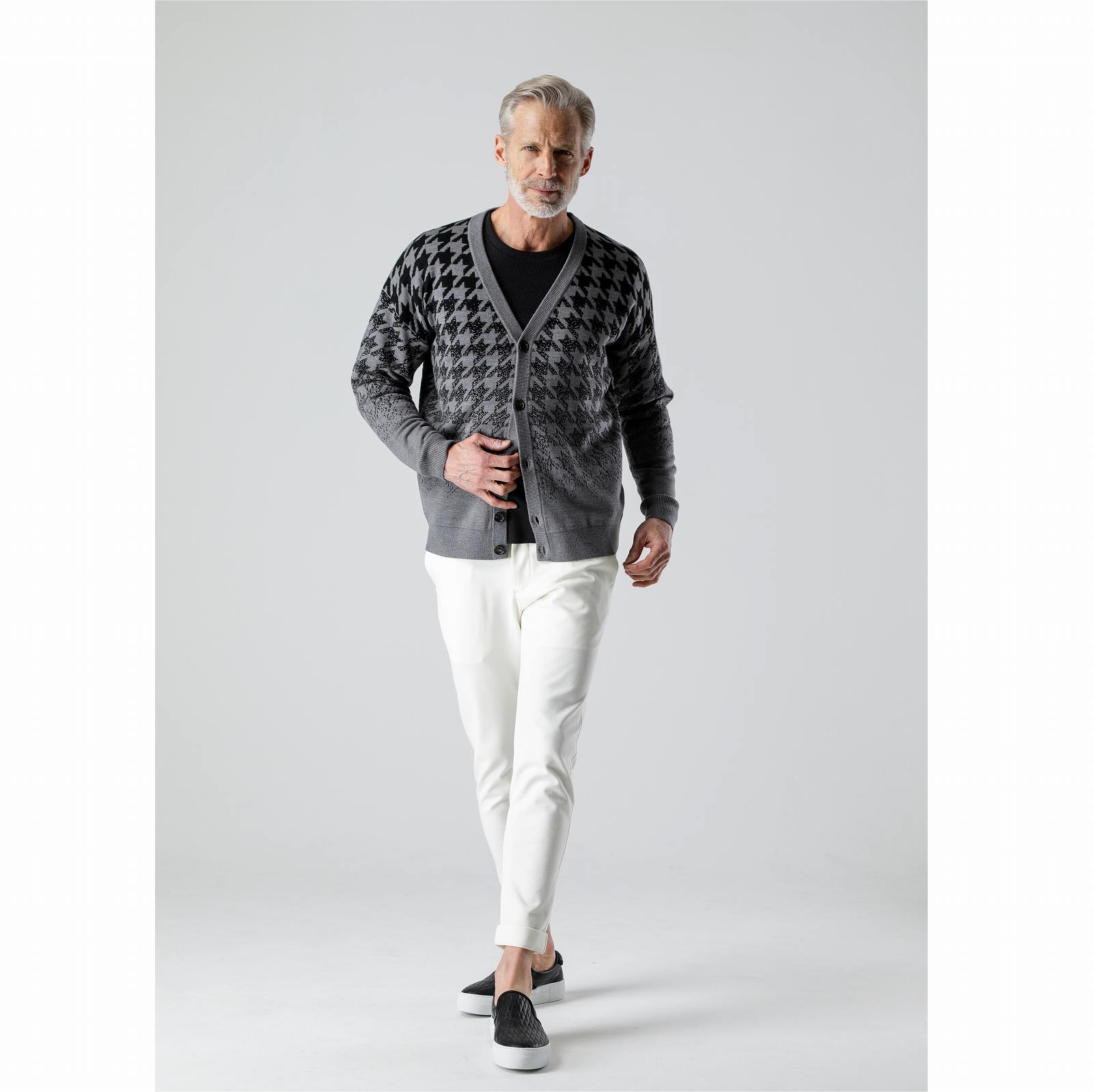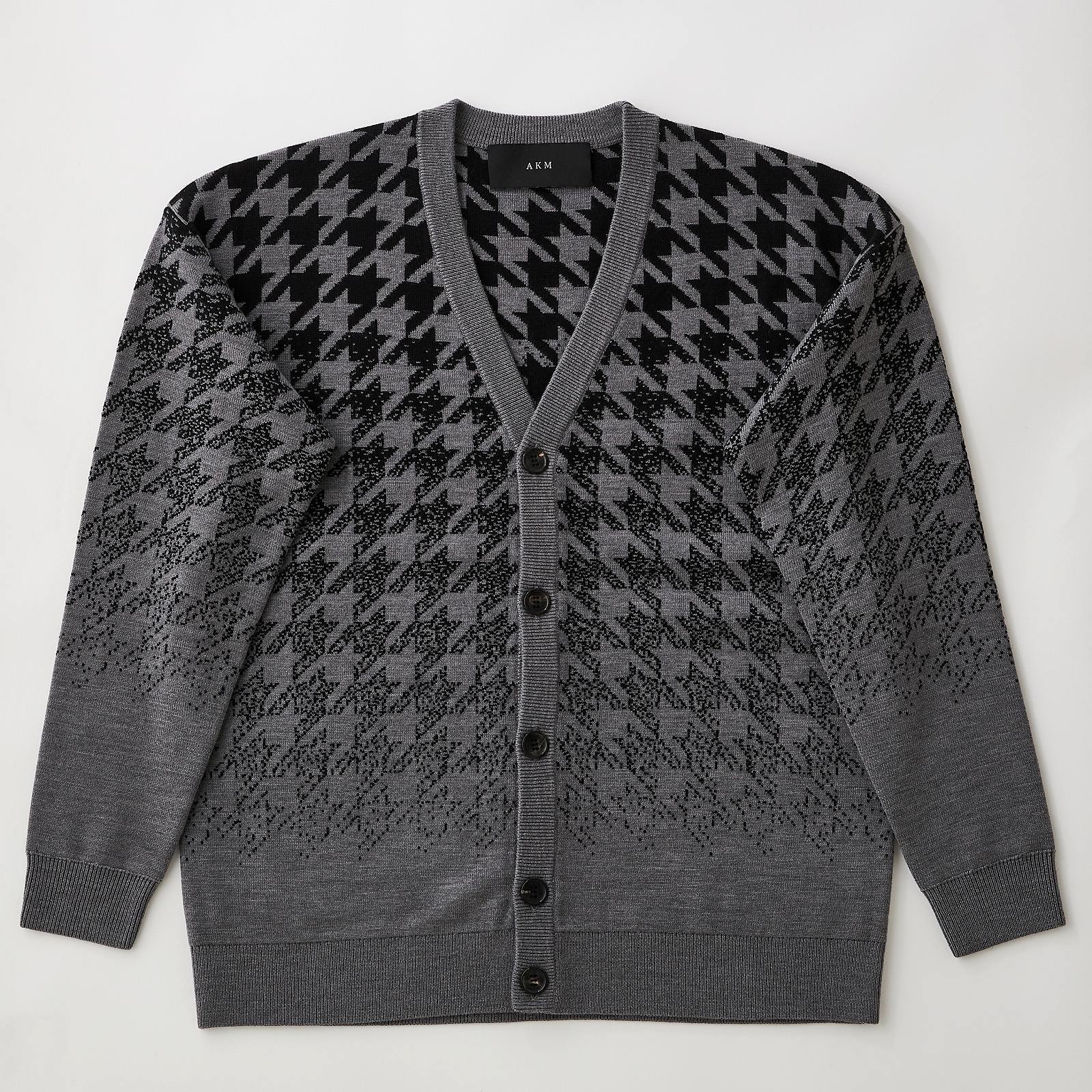 【SALE:金額お問い合わせ下さい】AKM (エイケイエム)CASHWOOL GRADATION CHIDORI CARDIGAN GRAY/BLACK
