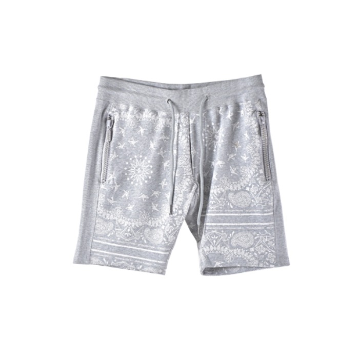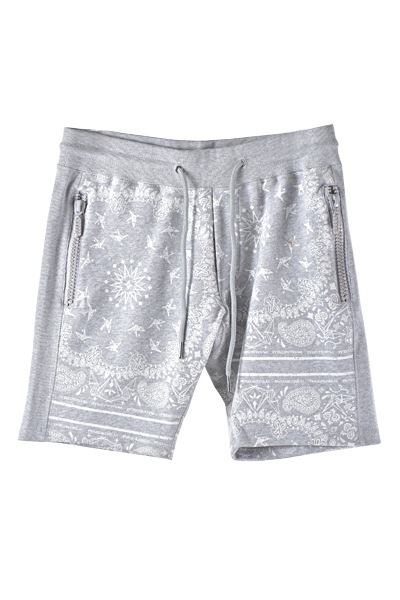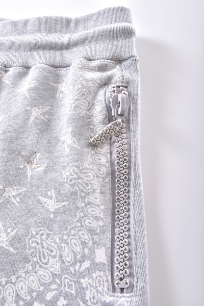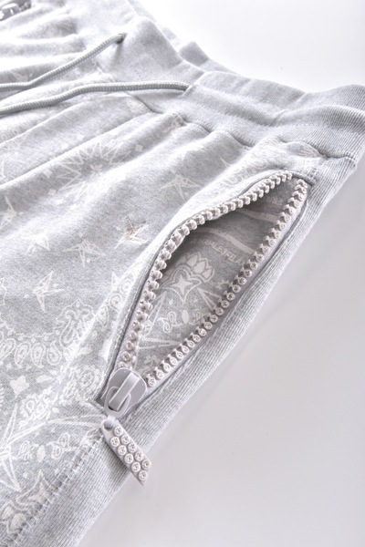 【SALE】1piu1uguale3 relax(ウノ ピゥ ウノ ウグァーレ トレ リラックス) PAISLEY RHINE STONE ZIP SHORTS GRAY