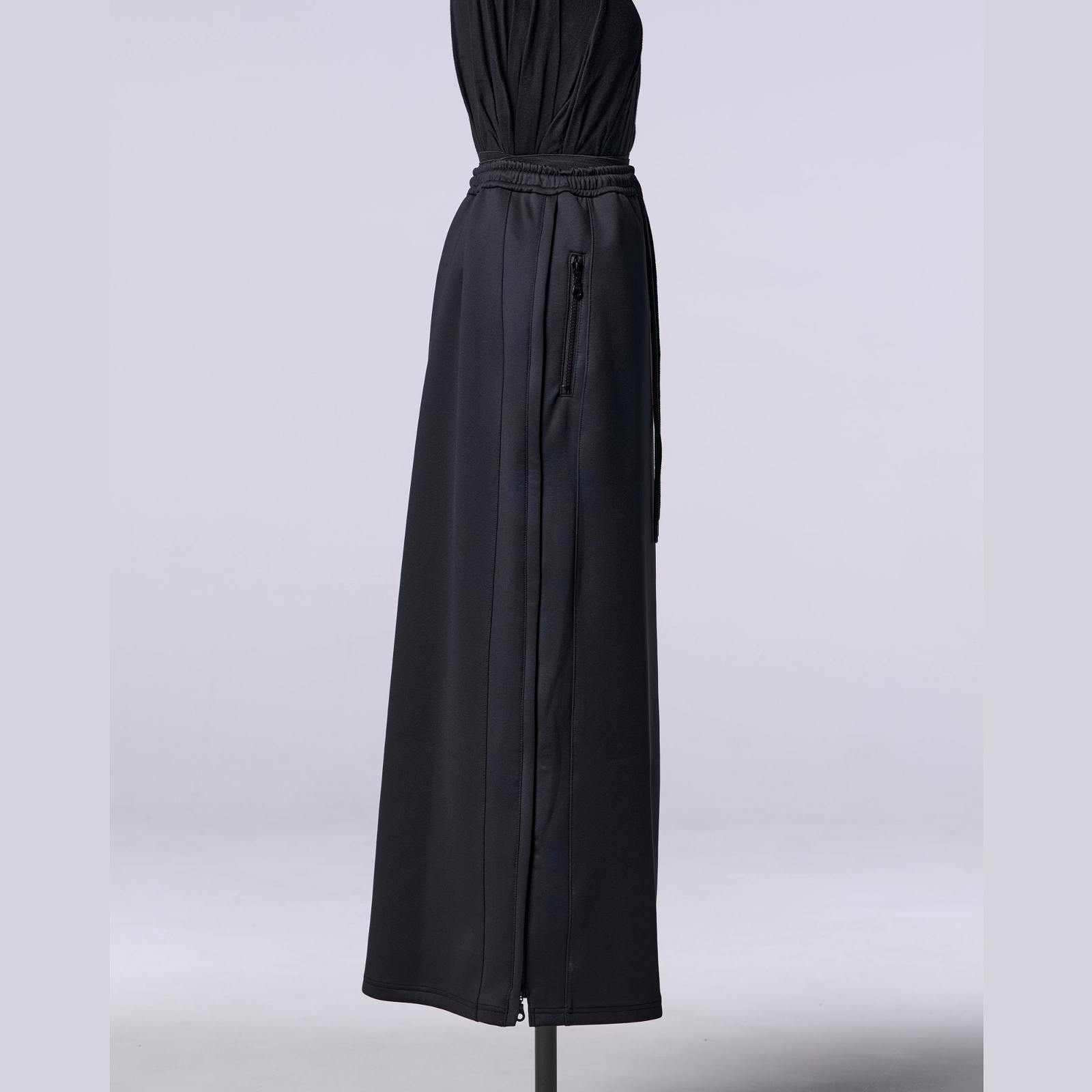 左右脇にファスナーが付き、歩行に合わせてスリットとして開け閉め可能。