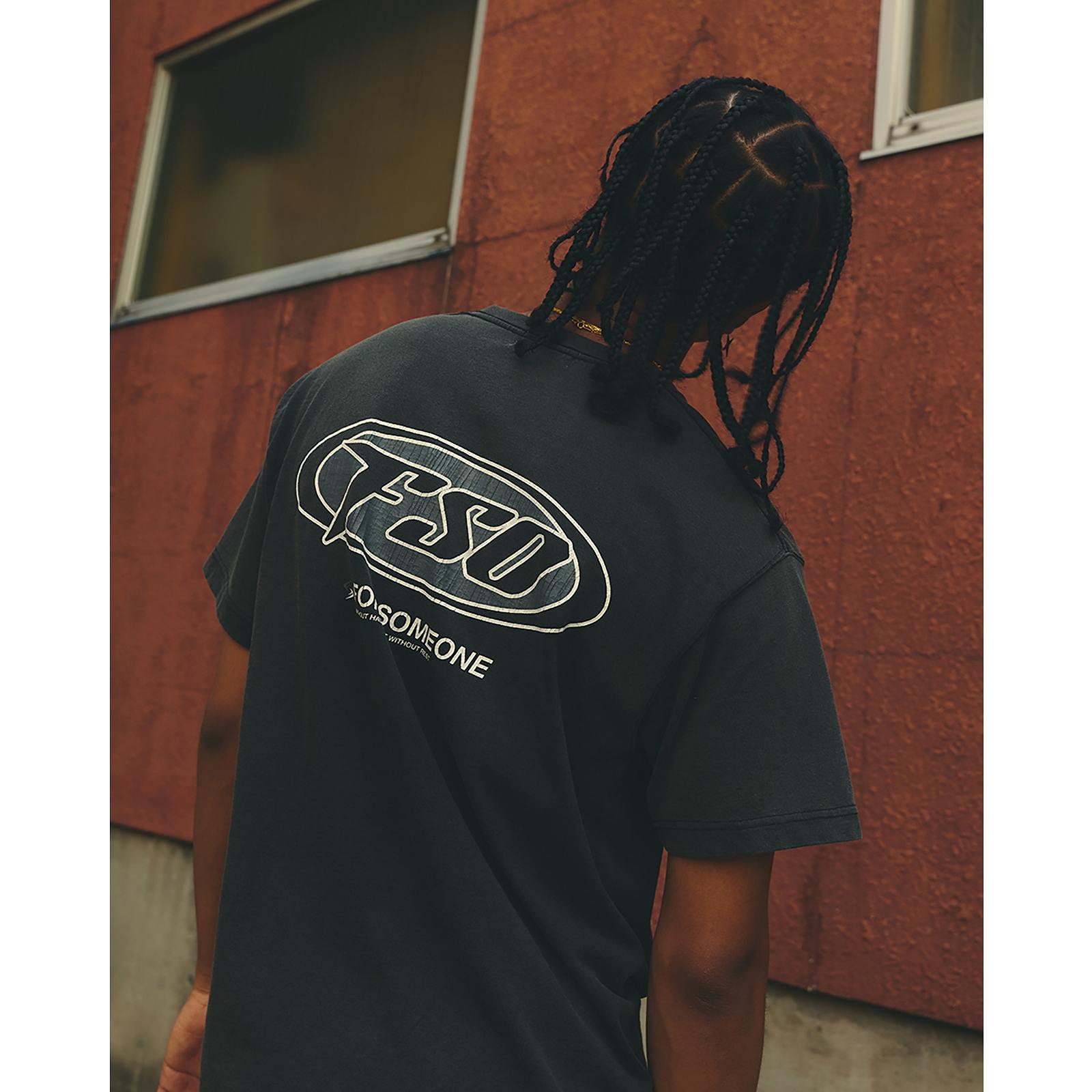 オーバルプリントのブランドロゴ、バックプリントのメッセージがポイントのロゴTシャツ。