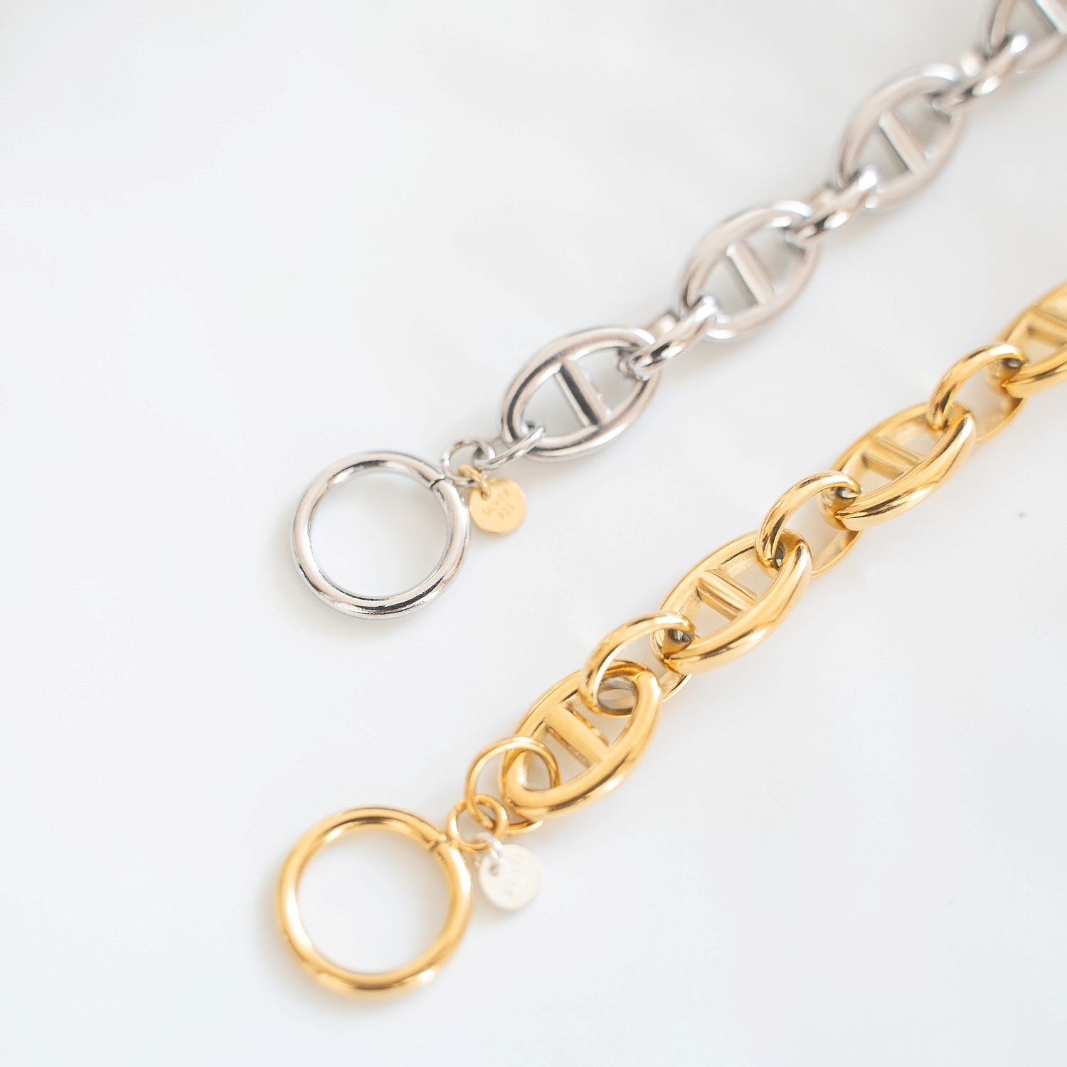 巾10mm/線径2mm、存在感のある太幅ブレスレット。