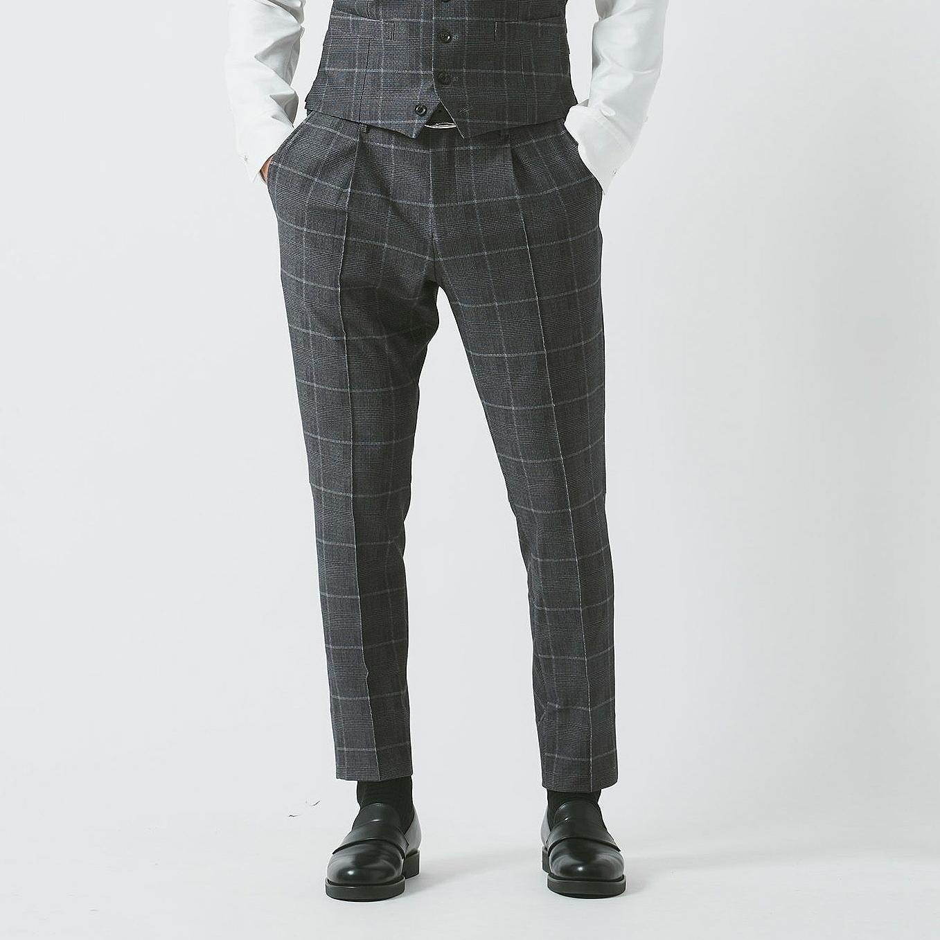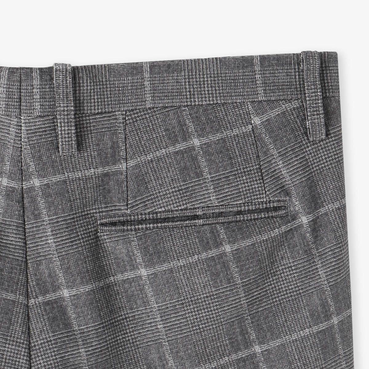 テストを重ね開発されたjunhashimotoオリジナルウールライクジャージ生地を採用したスリムパンツです。 テストを重ねて開発されたjunhashimotoオリジナルのウールライクジャージ生地は、ポリウレタンを適切な割合で配合し、しなやかなストレッチ性と優れたキックバックで快適な着心地を提供します。まるでイタリア高級メゾンのようなリッチな風合いに、オリジナルの柄を組み合わせ、洗練されたインポート感を演出。 junhashimotoの得意とテーパードのかかったスリムシルエットのデザインとなっています。 シングル仕立ての16cmの裾幅は足元にかけてすっきりとした印象を与え、自然な美脚効果を発揮します。 タイトな見た目でも、腰回りにゆとりがあるためストレスなくお使いいただけます。