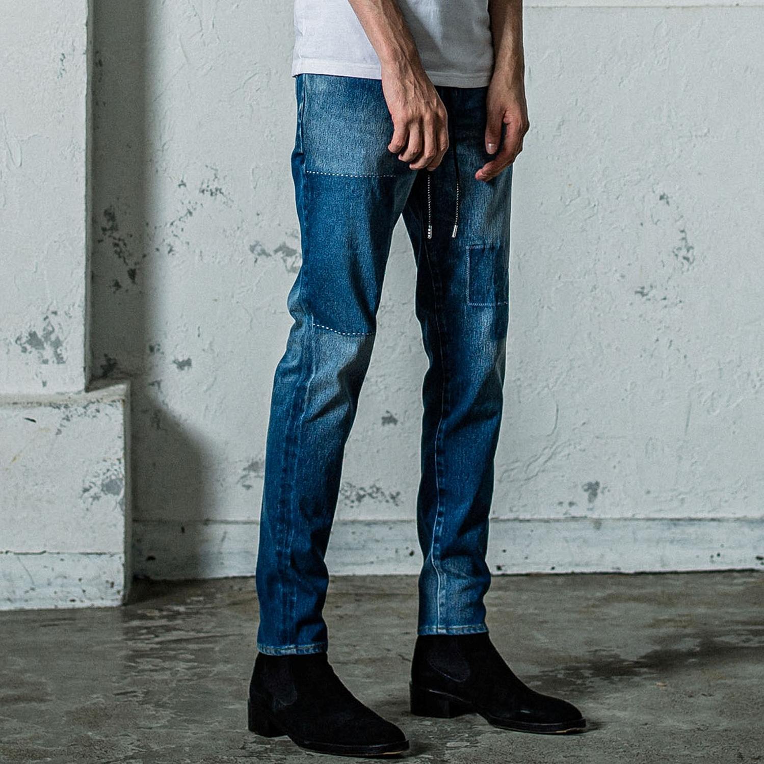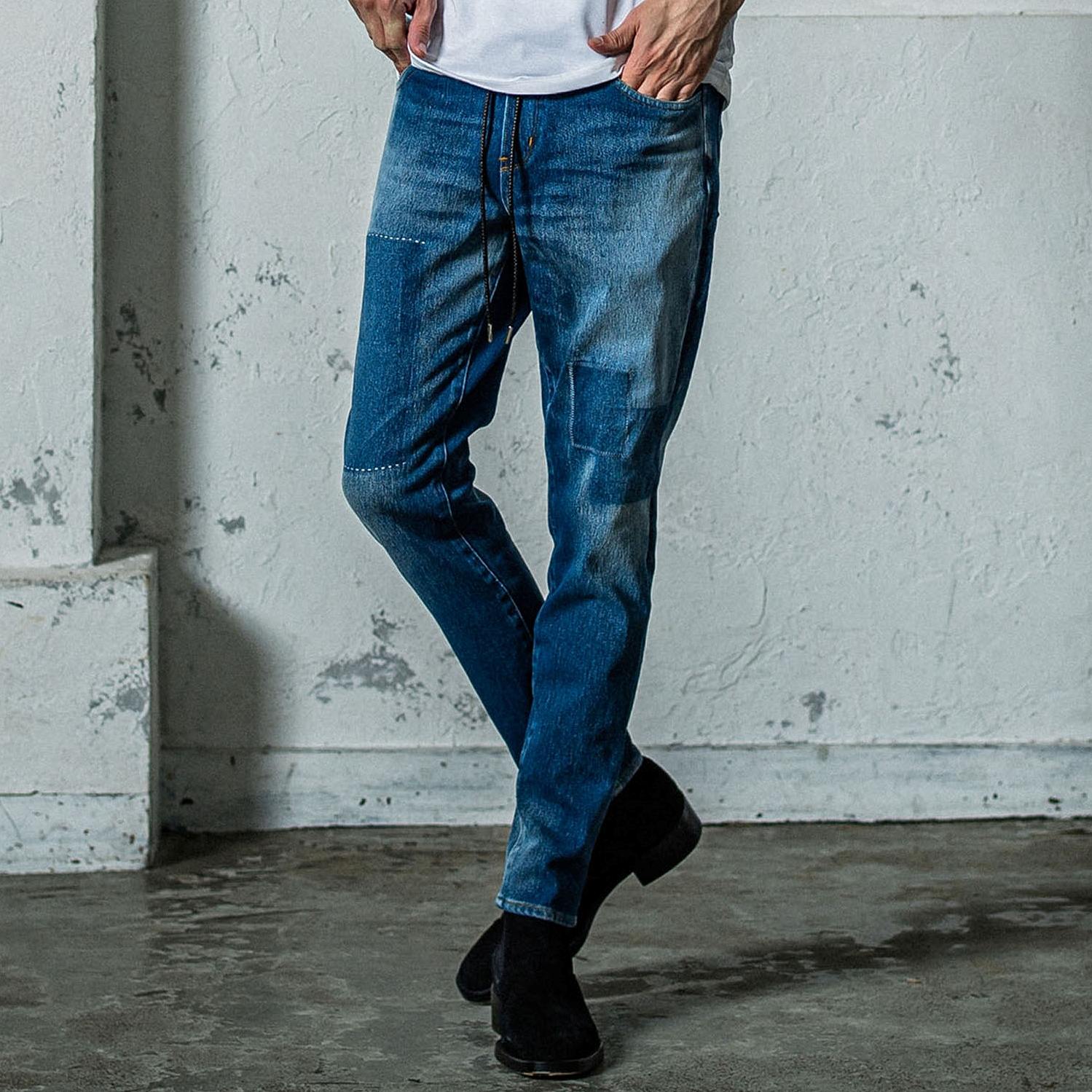 定番ジャージーンズ 。腿周りがやや緩めのテーパードシルエットMICK