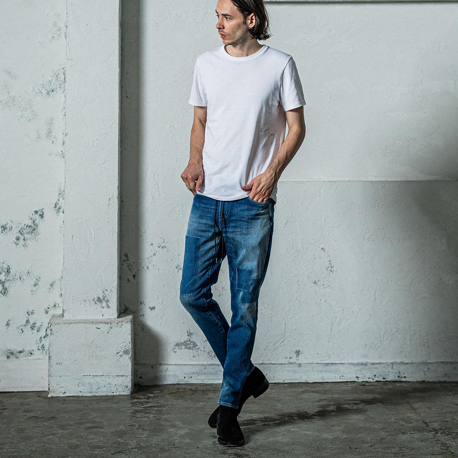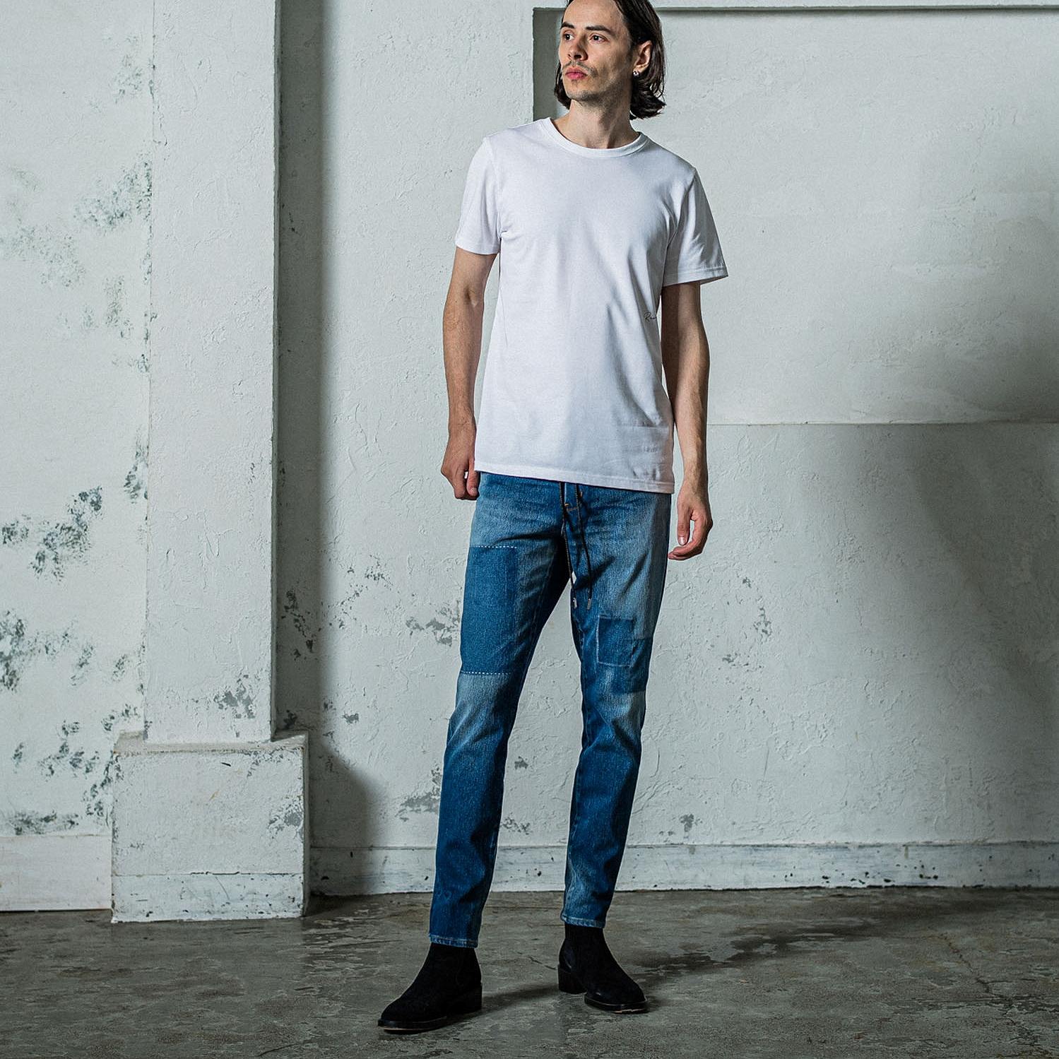 WHREMAKEは同素材のホワイトを各所クラッシュと各所番手を変えた。