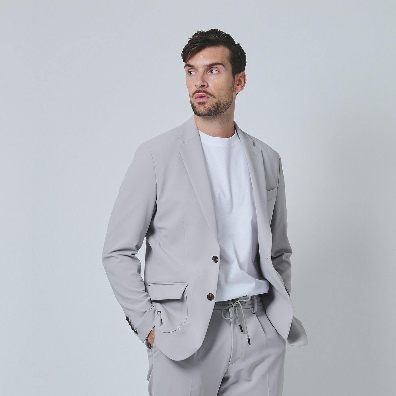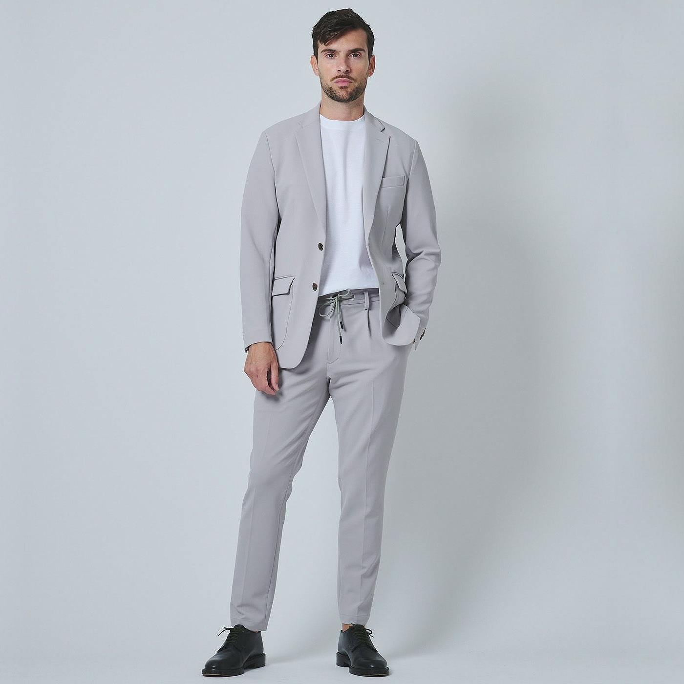 ニットのような伸縮性を持つMagic Stretch素材を使用。90mの生地を50mに縮める特殊加工により、高いストレッチ性を実現。ハイレベルな吸水速乾機能を備え、さらっとしたドライなタッチで快適な着心地を提供します。シワになりにくく、イージーケアなのも魅力です。