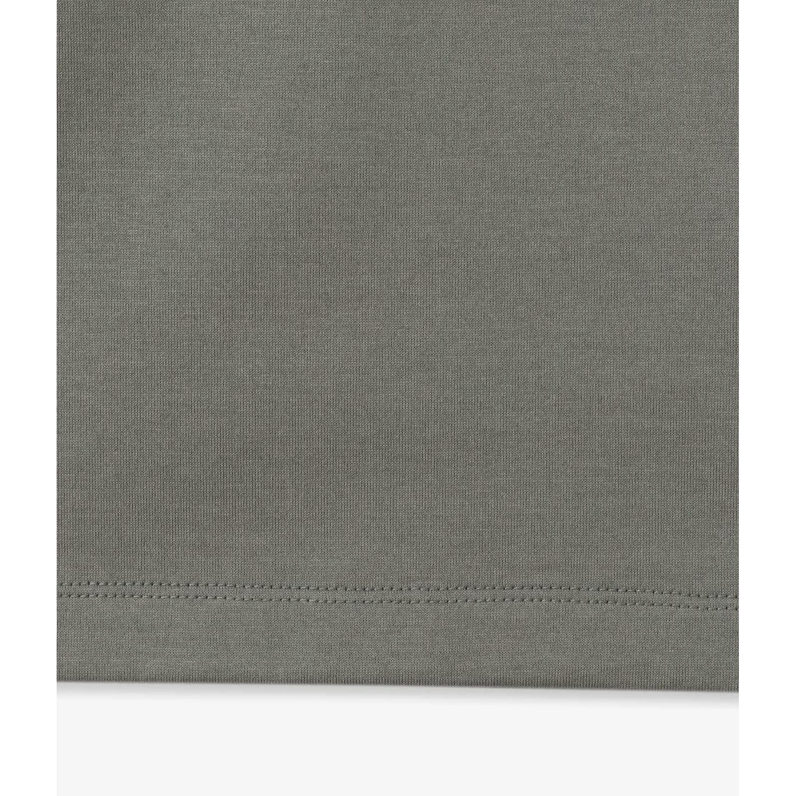 20~30番クラスのコンパクト糸を使用した肉厚天竺素材。シルケット加工により毛羽を抑え、なめらかで光沢のある風合いを実現しました。