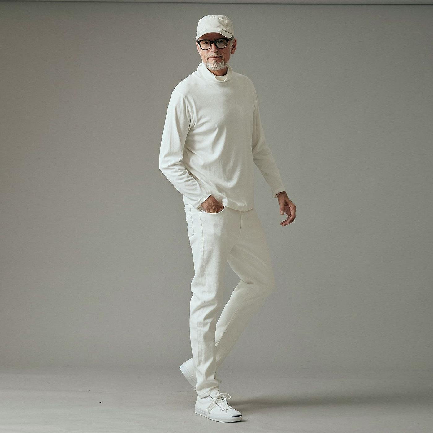 柔らかさと高級感を兼ね備えたクルーネックTシャツスタイル。シンプルながらもエレガントな表情を演出します。