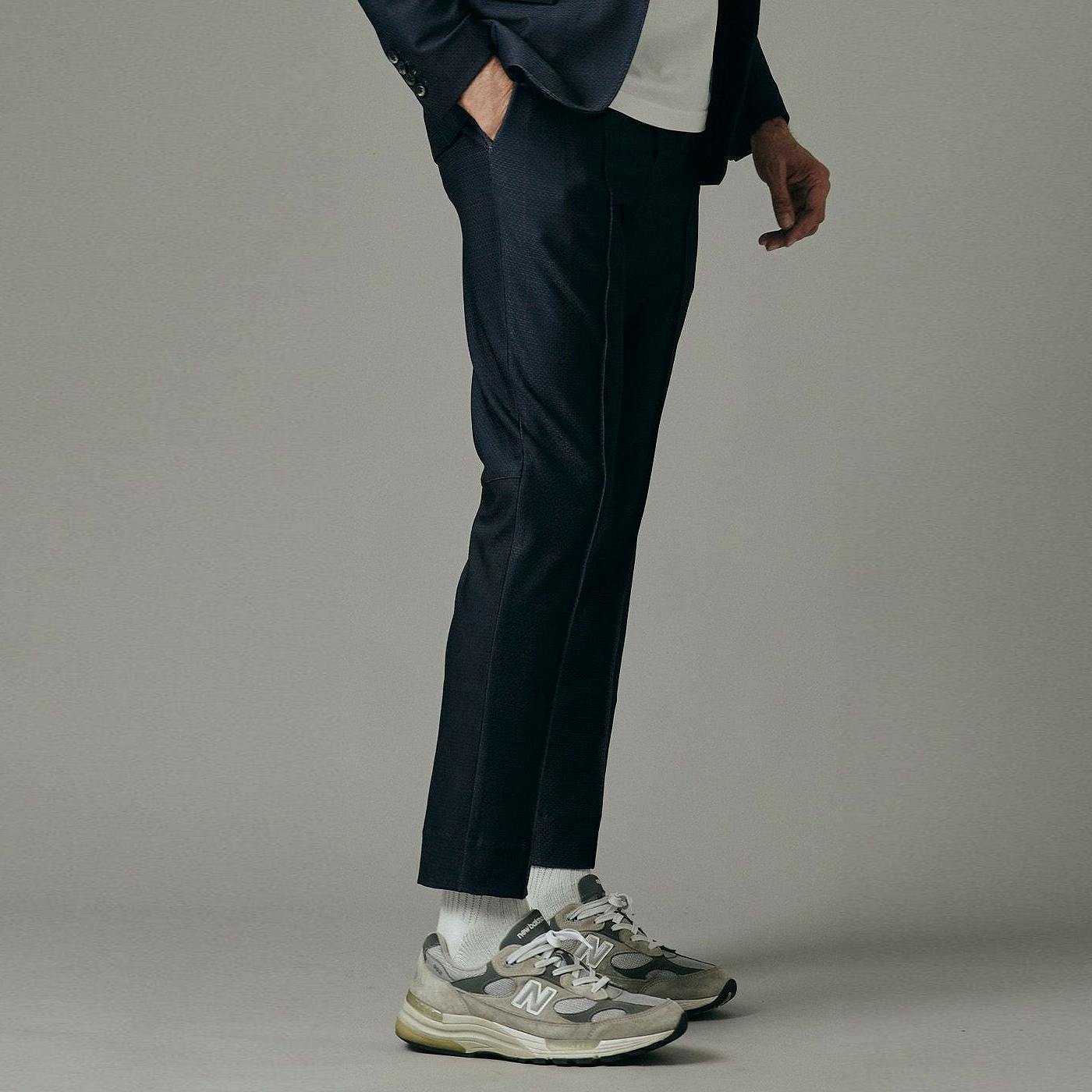 ブランドを象徴する1タックスリムシルエットをベースに、腰まわりには程よいゆとりを持たせ、洗練された見た目と快適な穿き心地を両立しました。