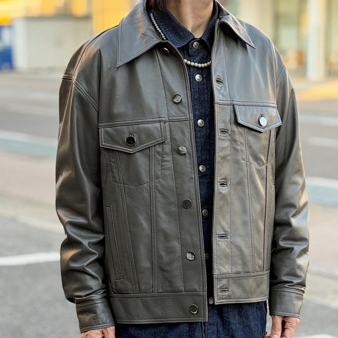 イタリア産のラムレザーを使用して、Re:new オリジナルの3rd型レザーを製作しました。
