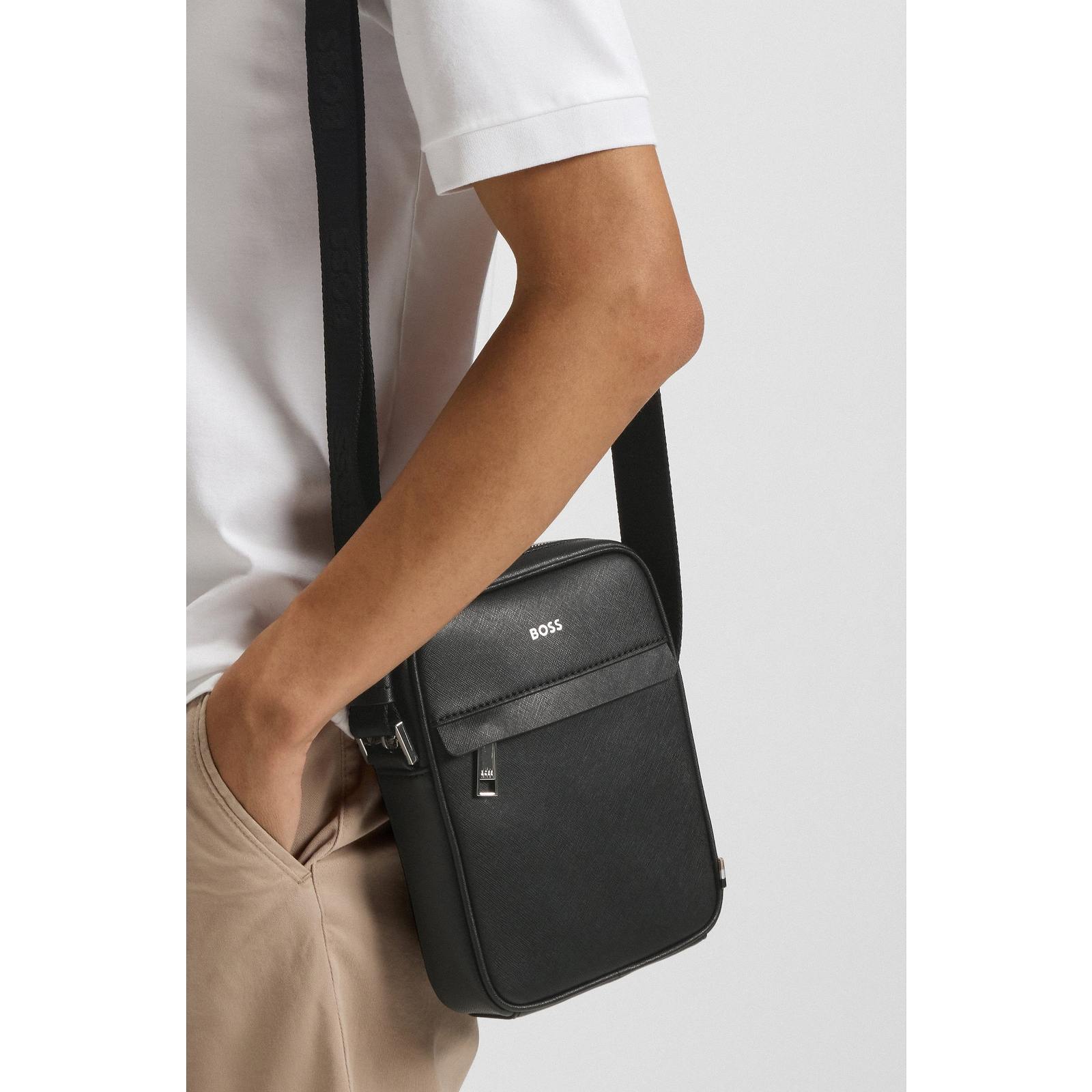 【SALE】BOSS(ボス) レポーターバッグ シグネチャーストライプ&ロゴディテール/BLACK