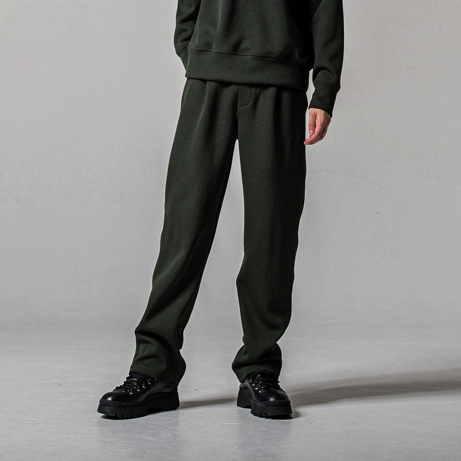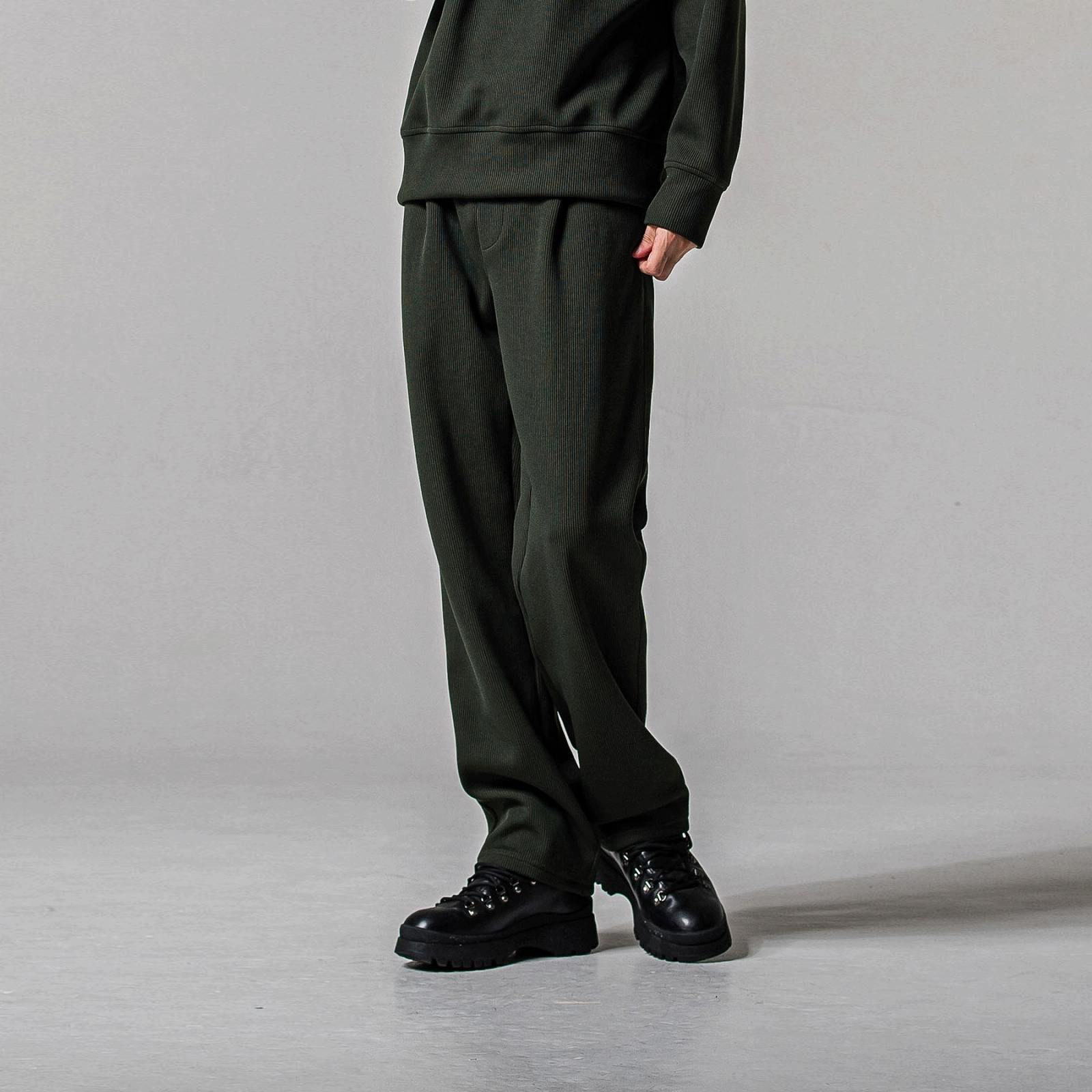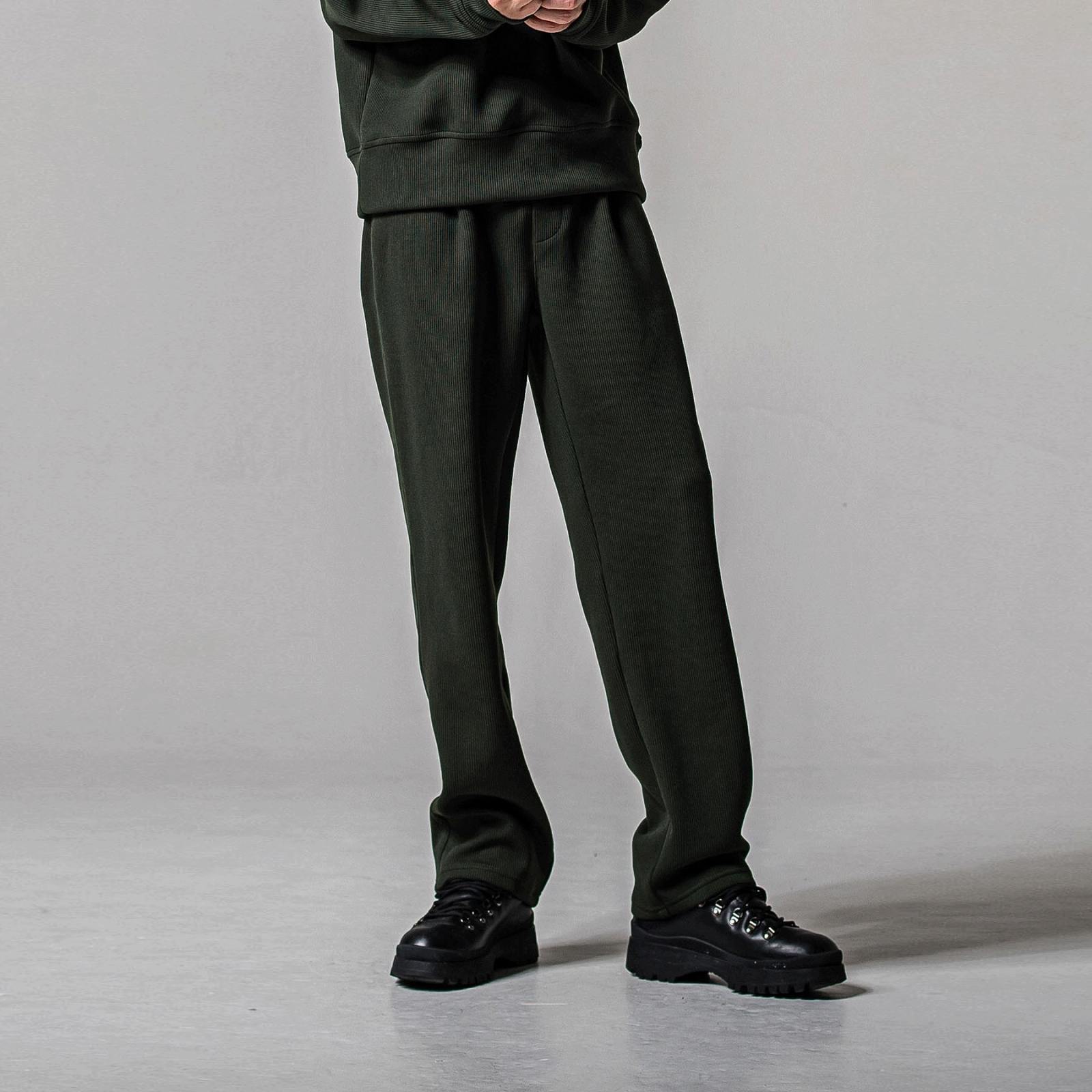 高機能畔編みニットセミワイドシルエットのワンタックイージーパンツ