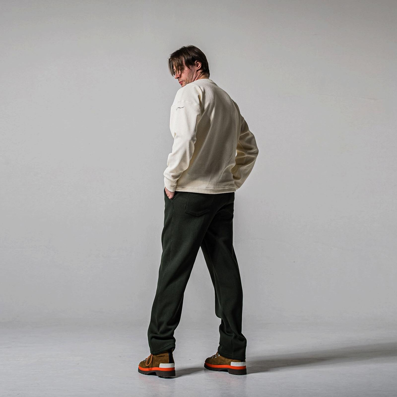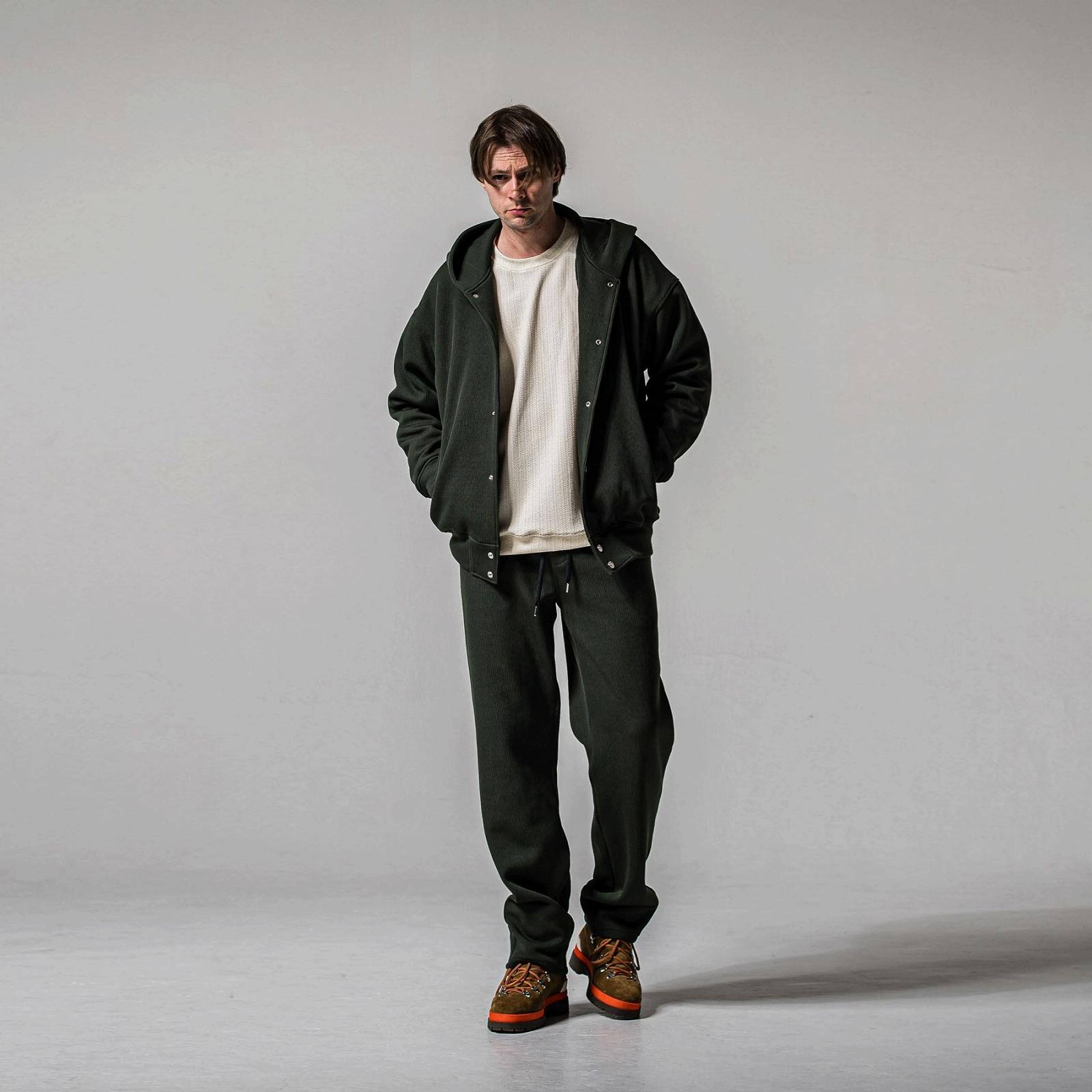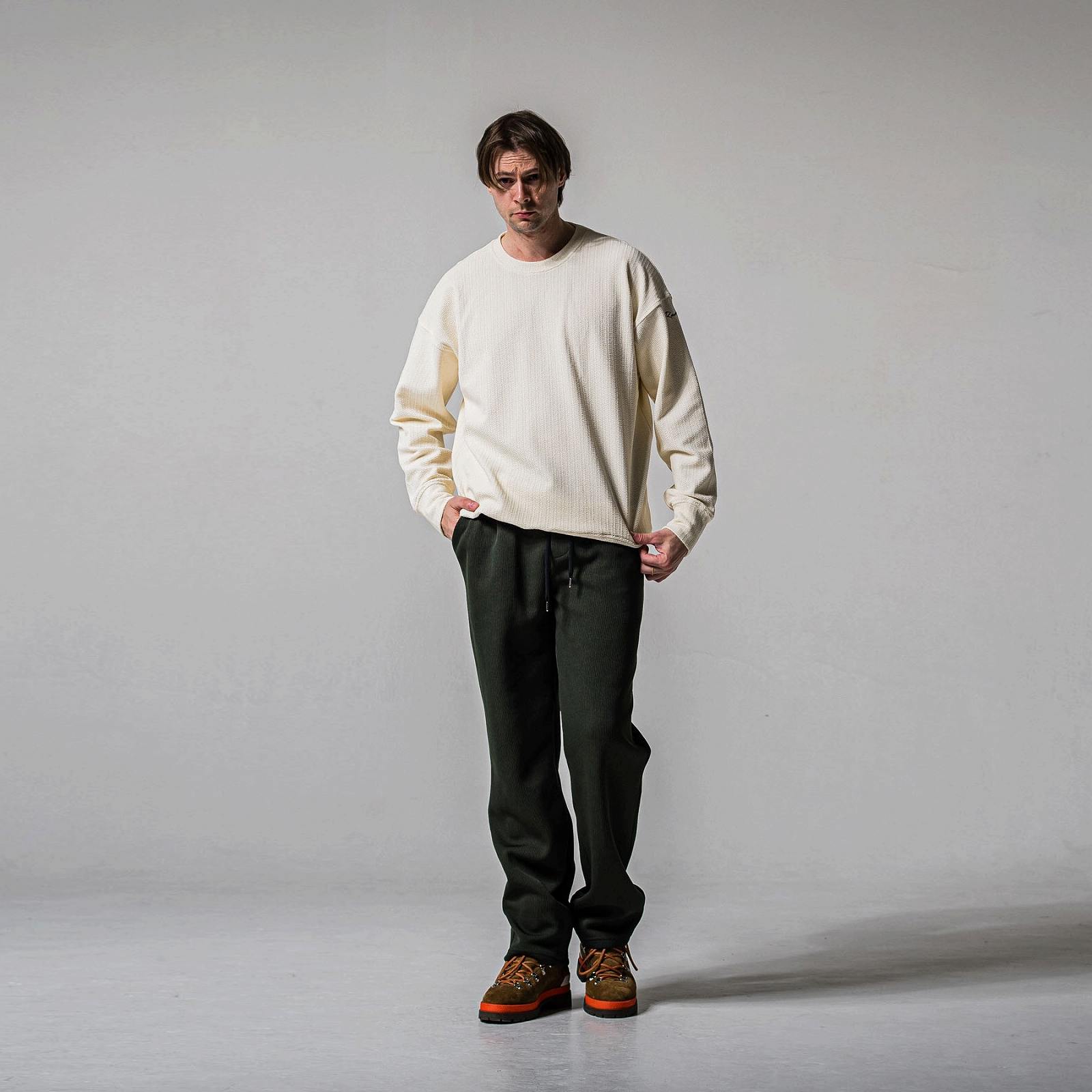 商品画像にて、こちらのパンツと同素材のトレーナーの生地素材感のアップ画像を掲載しております。