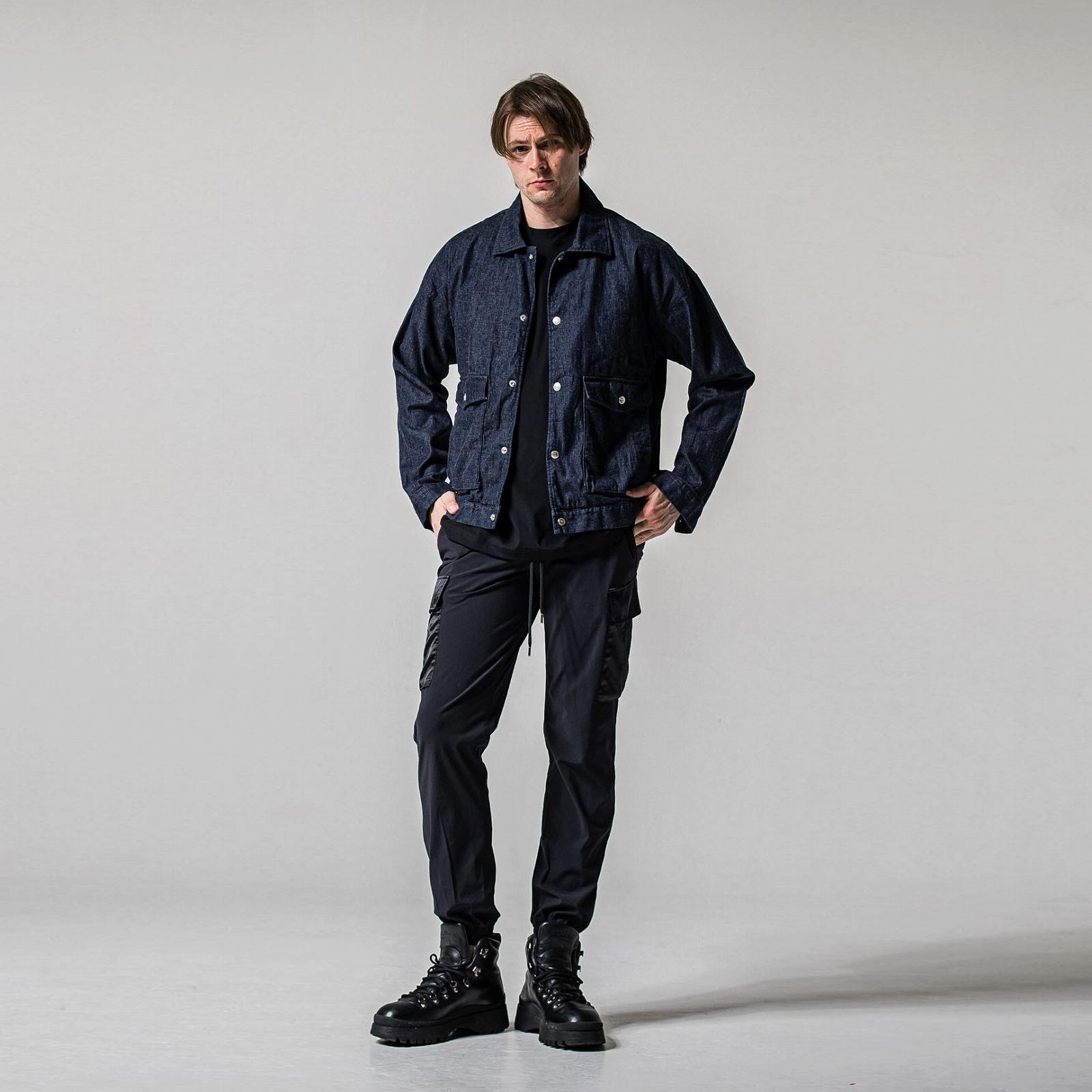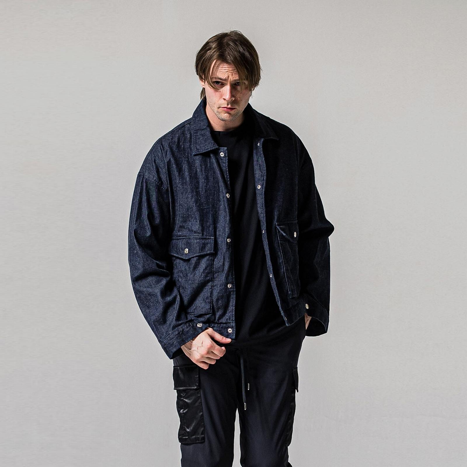 新定番シャツ生地ダンガリー素材のミリタリーブルゾン