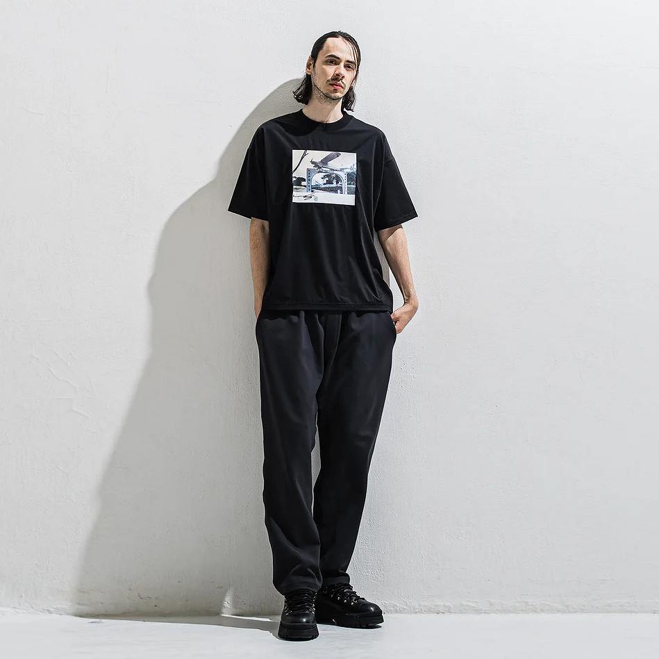 素材は日本を駆使した極細フルダルポリエステルとプレミアムストレッチファイバーを掛け合わせた糸を使用。
