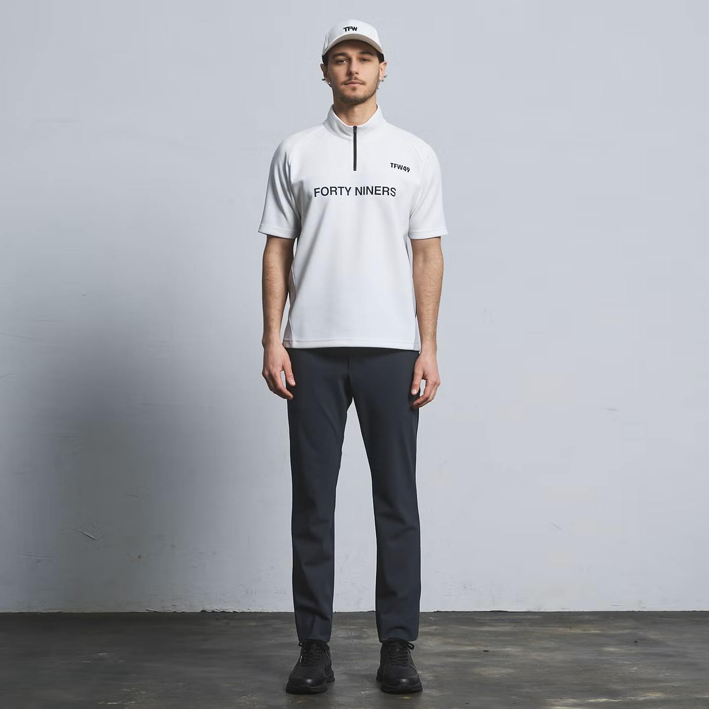 TFW49(ティーエフダブリューフォーティーナイン) HALF ZIP S/S MOCK NECK/BLACK