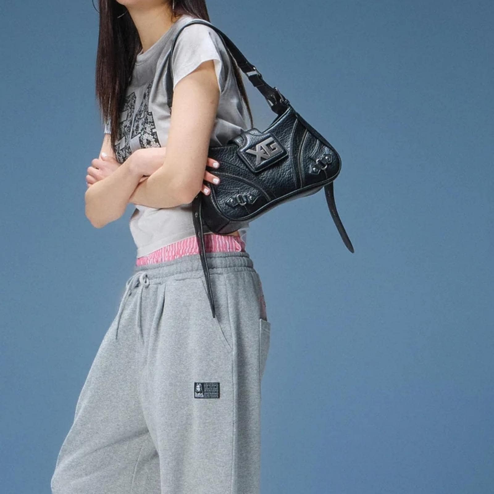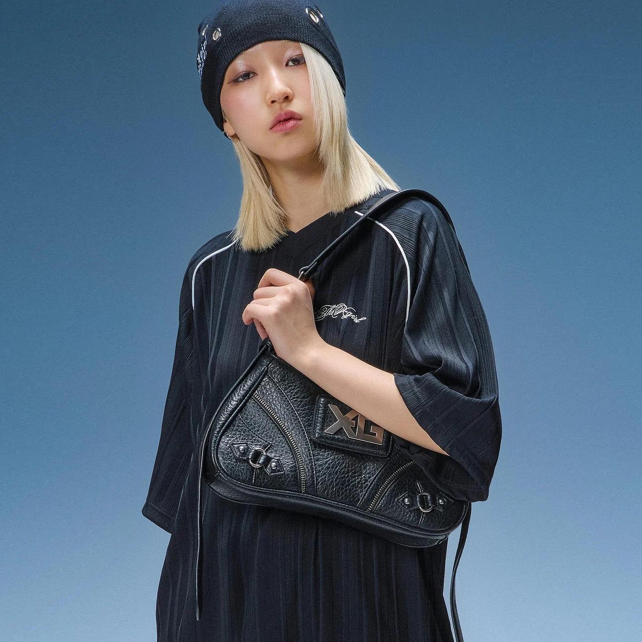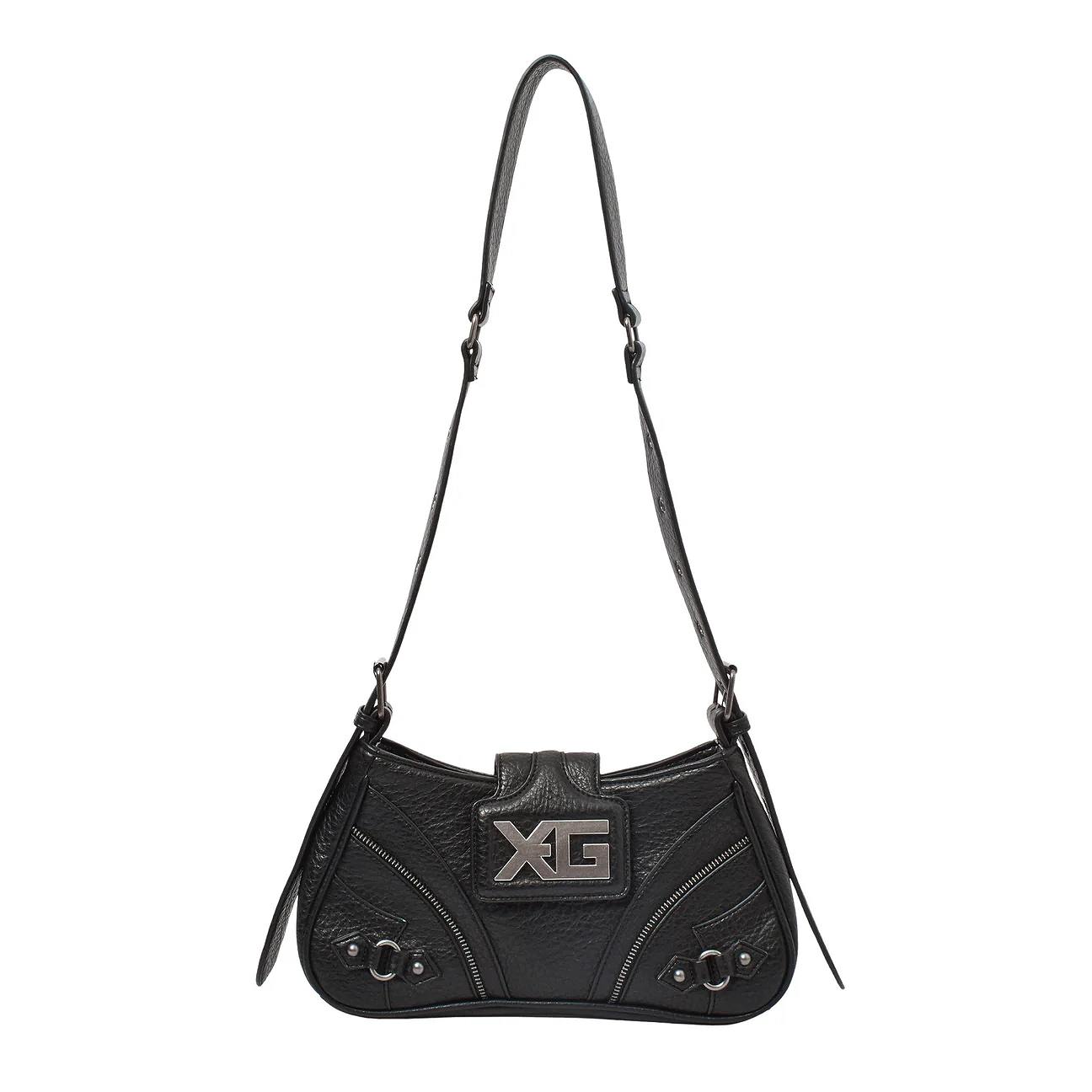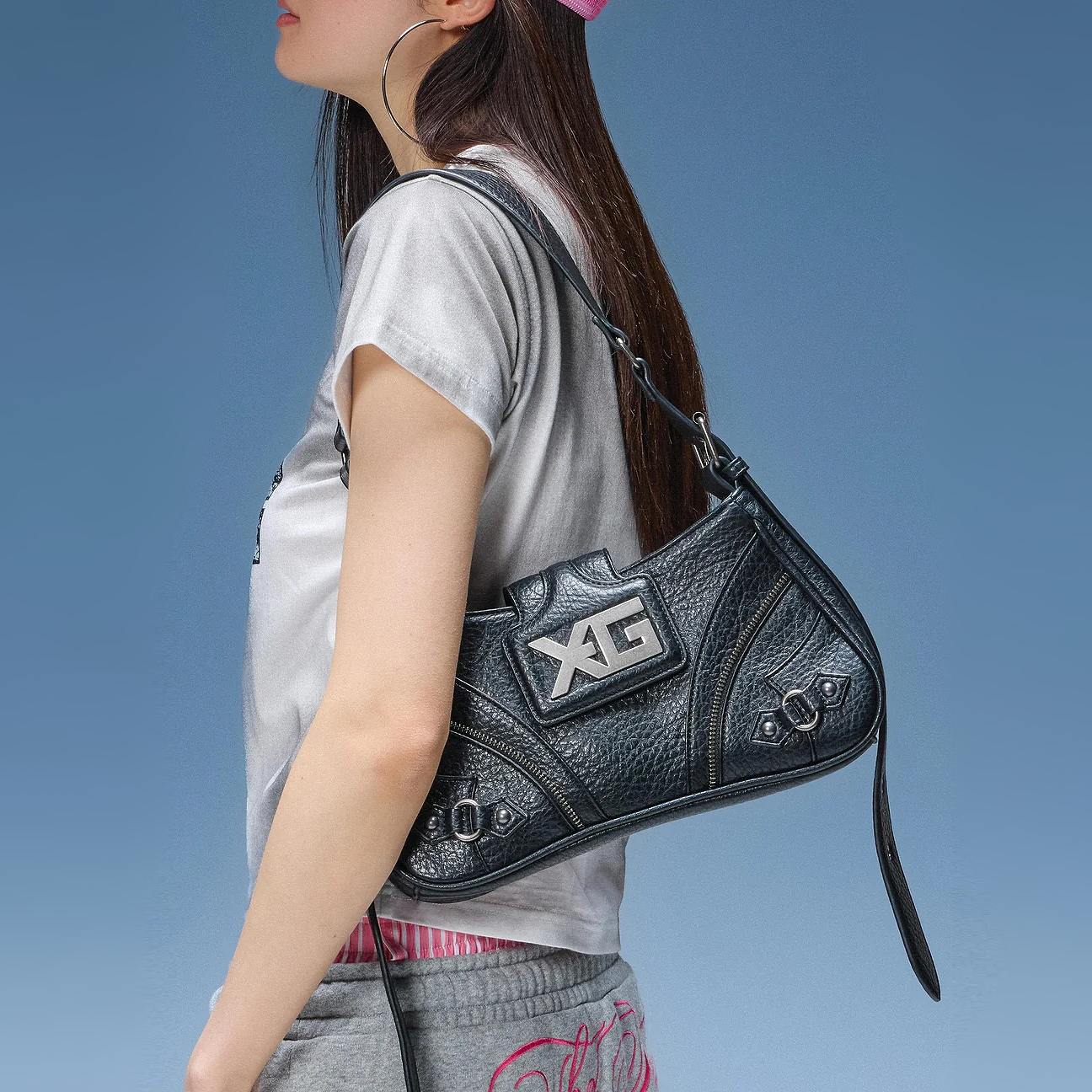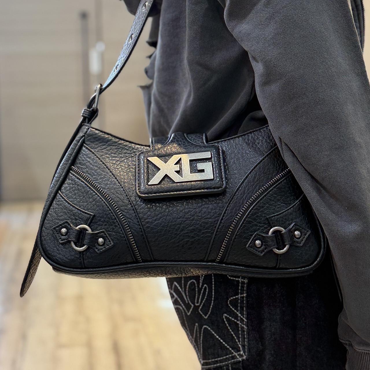 X-girl(エックスガール) XG EMBLEM BUCKLE PANELED SHOULDER BAG/ BLACK