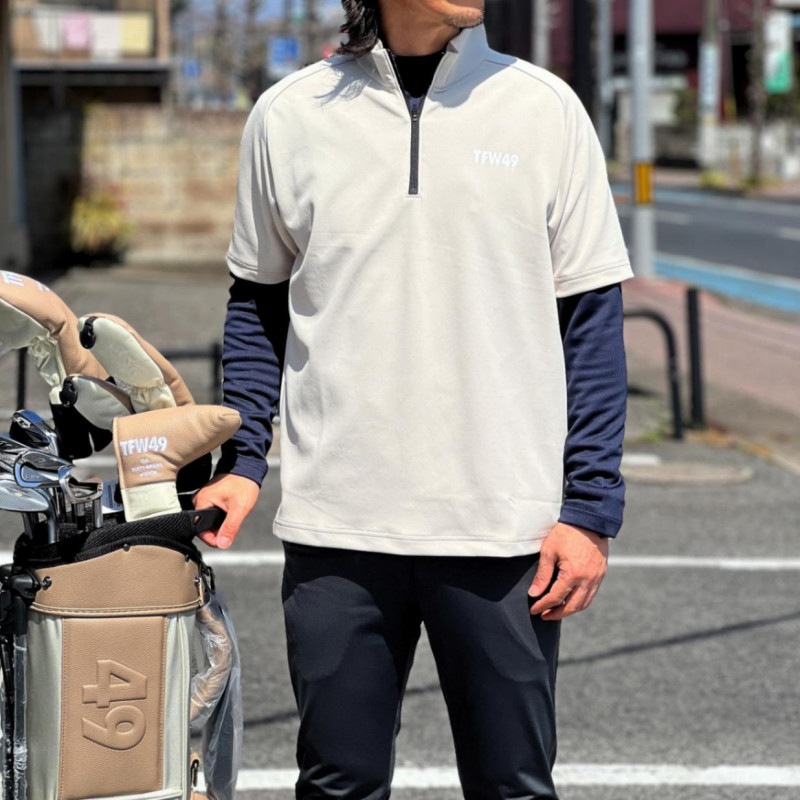今回はTFW49を用いたGOLF STYLEで。 あえて黒系は用いずに、ベージュやネイビー、グレーという、オトナカラーで統一。 スコアは厳しいのですが、まずはスタイリングで、見た目重視で 笑。 着用 上着 L ボトム M