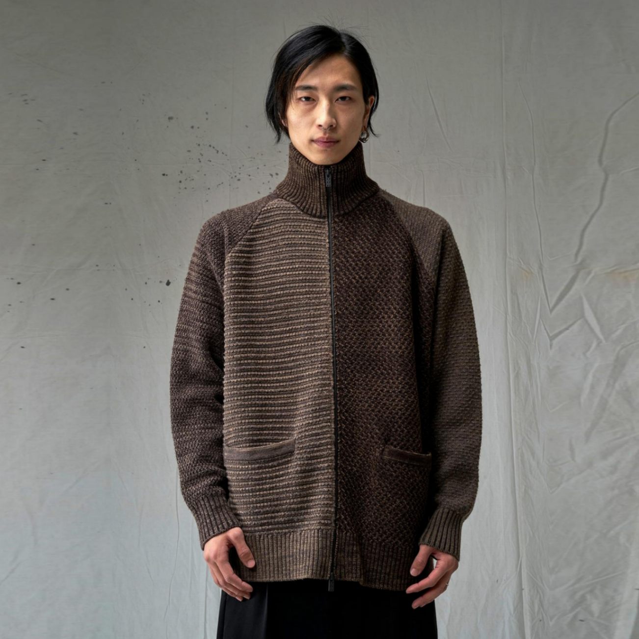 【SALE:金額お問い合わせ下さい】AKM (エイケイエム)CASHWOOL GRADATION CHIDORI CARDIGAN GRAY/BLACK
