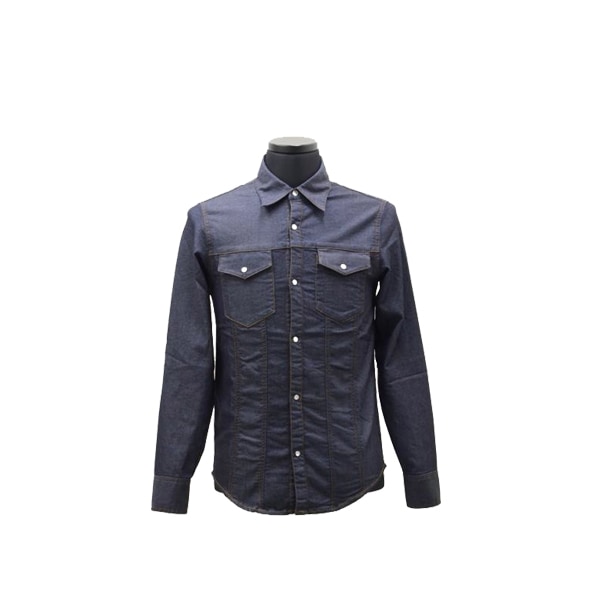 工場に製作を依頼する事で、バイヤーNIHEIが着たかった(提案したかった)KNIT DENIM SHIRTを製作。肉厚でキックバックが強く、着心地抜群のKNIT DENIM素材を選定。基本的にSHIRTをアウターとして着る時は「袖捲り派」のNIHEIは、今回、袖裏に配した、バンダナ柄をアクセントにしました。USEDにはLIGHT GREEN系の素材・ONE WASHにはNAVY PURPLE系の素材をチョイス。またシャツで有りながらも、Gジャケットの要素も少しだけ組み込んでいるので、最近の気分である、「INNER G-JACKET」というSTYLINGにも、無理なくこなせるチラ見せ具合のデザインを意識し、素材、パターンも調整しています。シンプルに綺麗にも着られる「ONE WASH」と、こなれた雰囲気が出る「USED」の、2デザインを製作しましたので、気分で選んで頂けると嬉しいです。しっかりした生地感と、抜群のストレッチ感を、是非、御試し下さい。