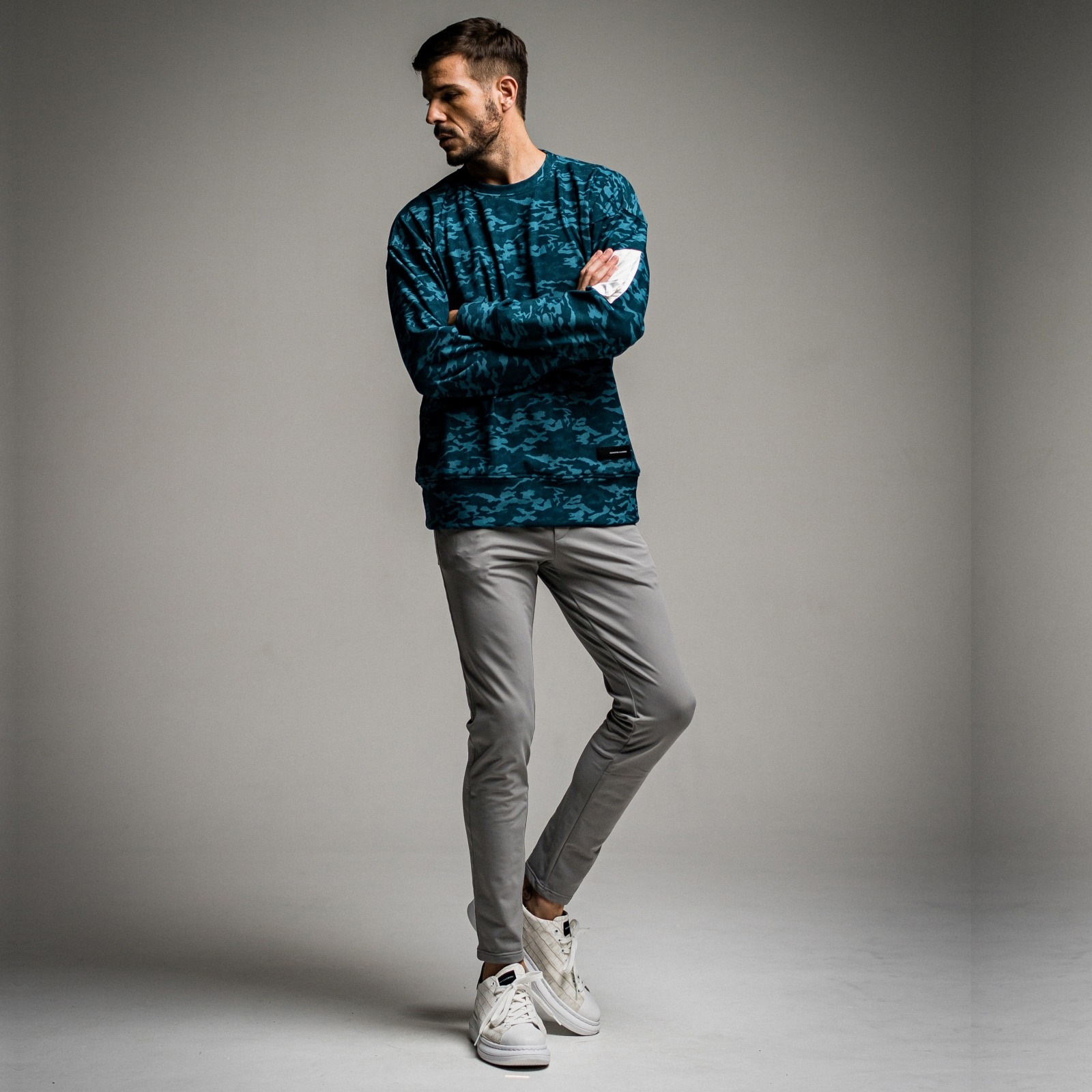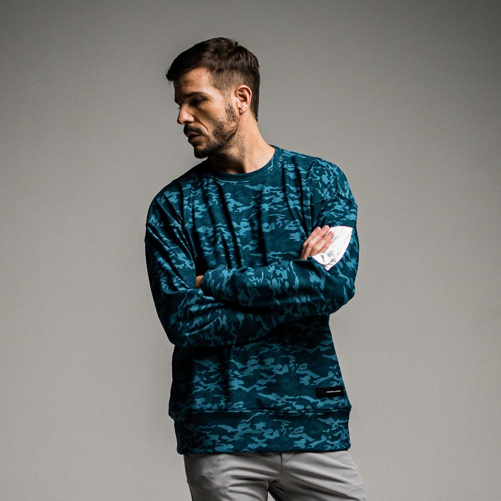 RESOUND CLOTHING(リサウンドクロージング) velours fleece drop trainer BLUEGREENCAMO