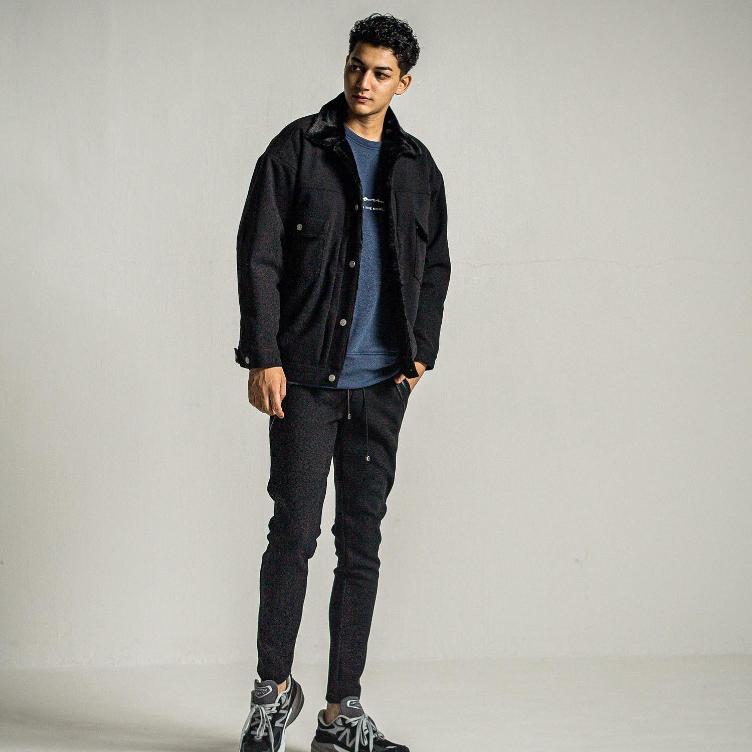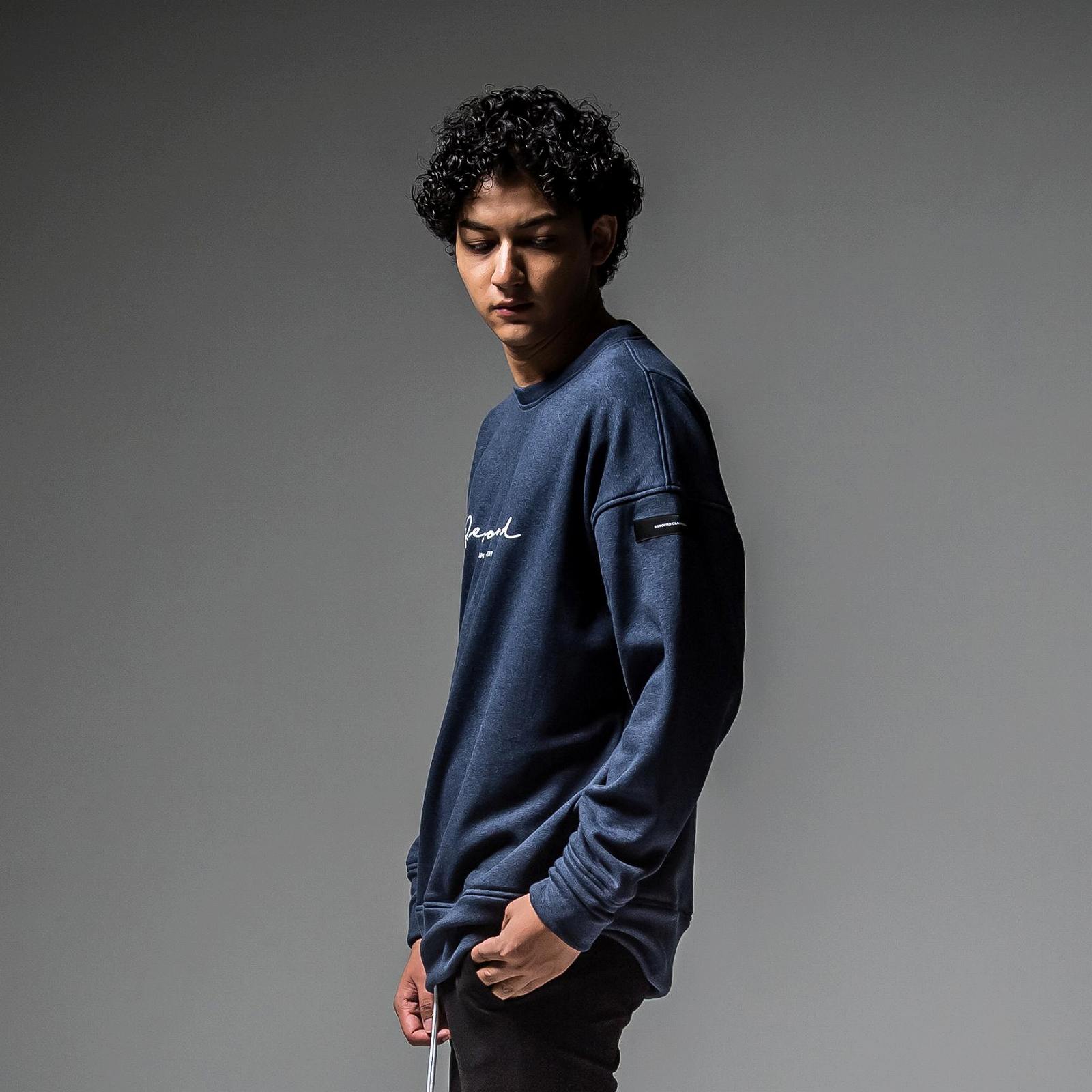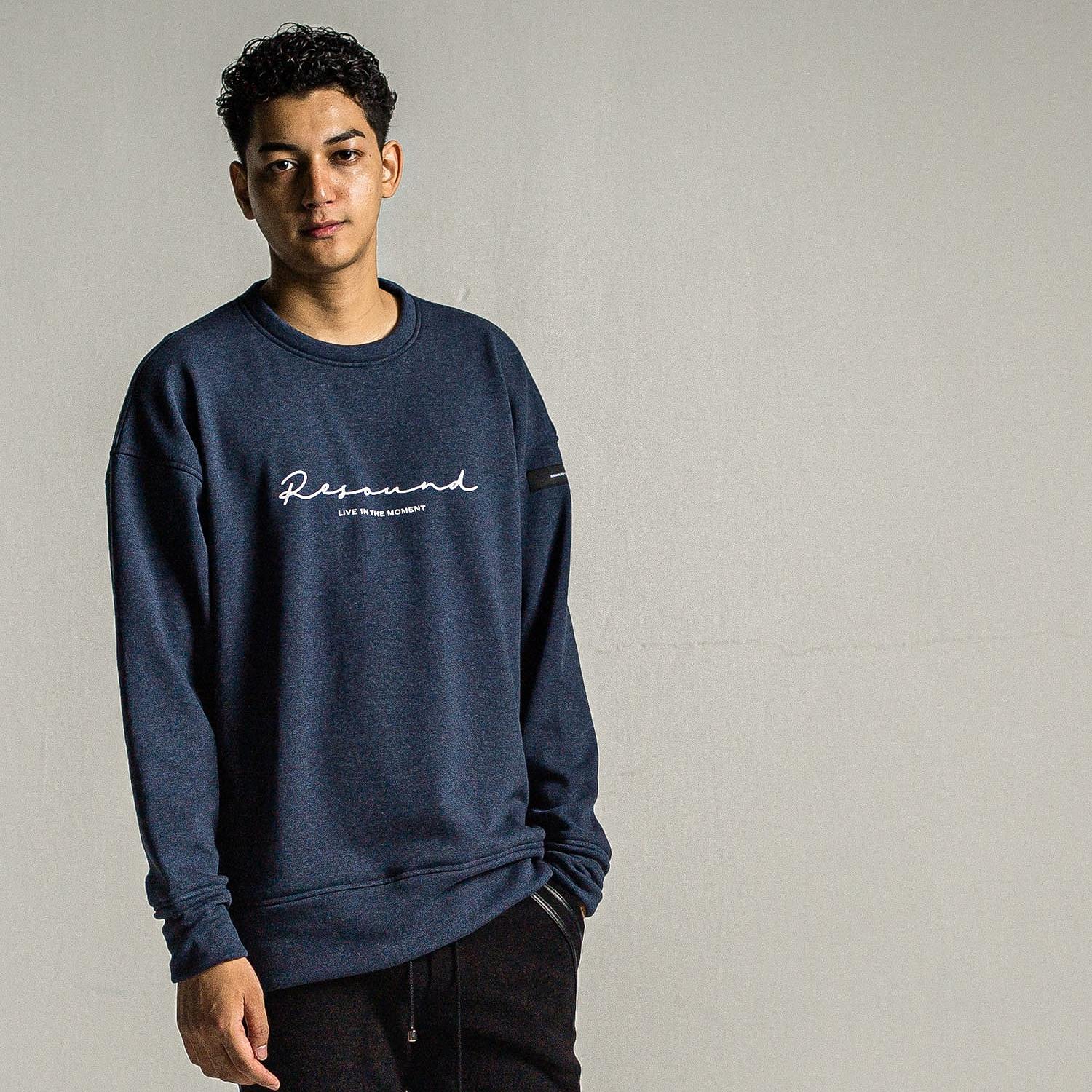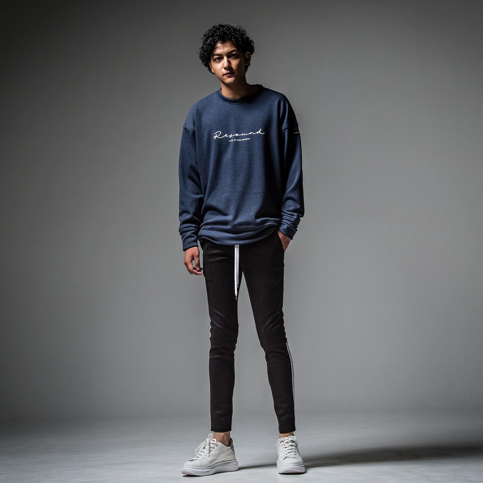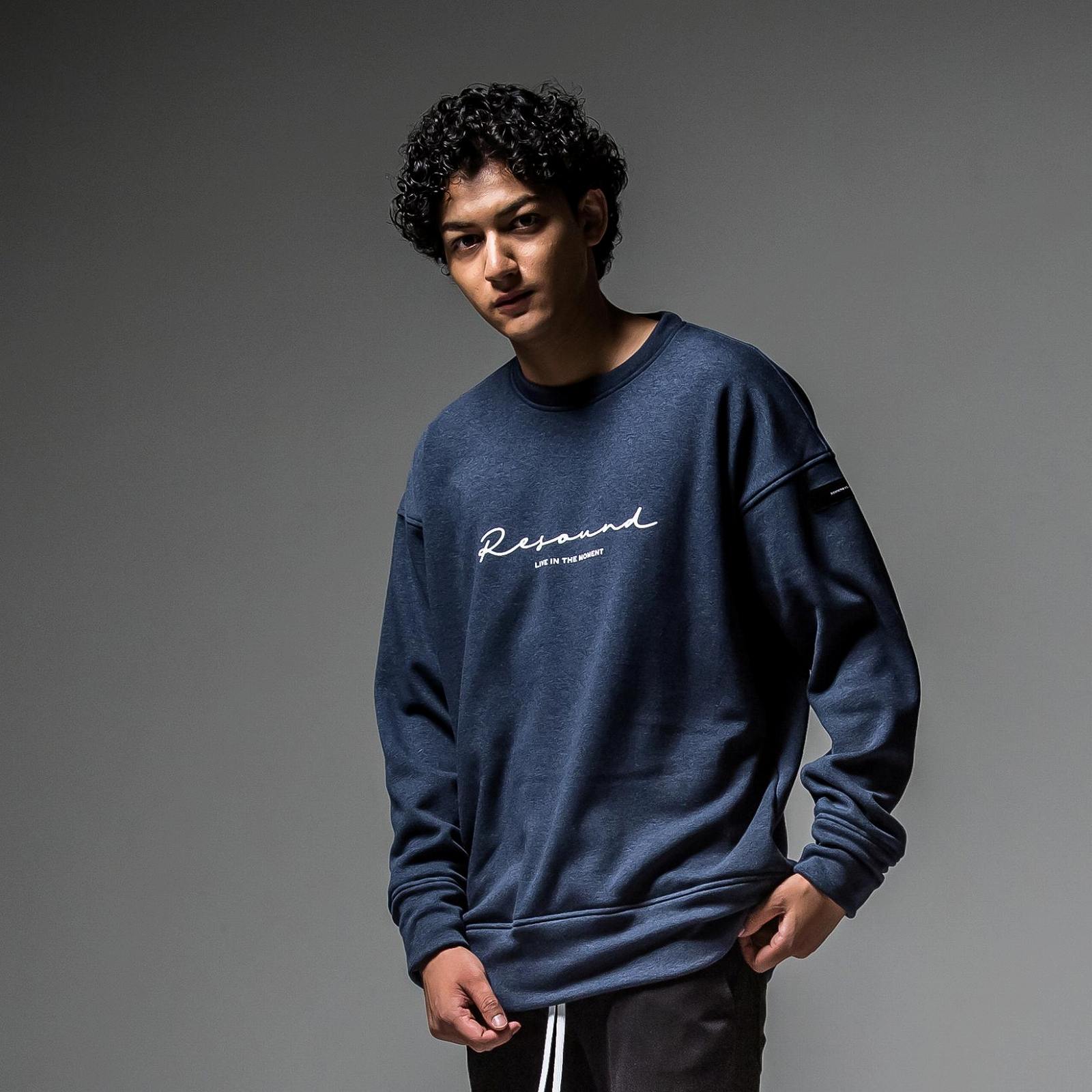 RESOUND CLOTHING(リサウンドクロージング)handwriting rogo velours fleece drop trainer/NAVY