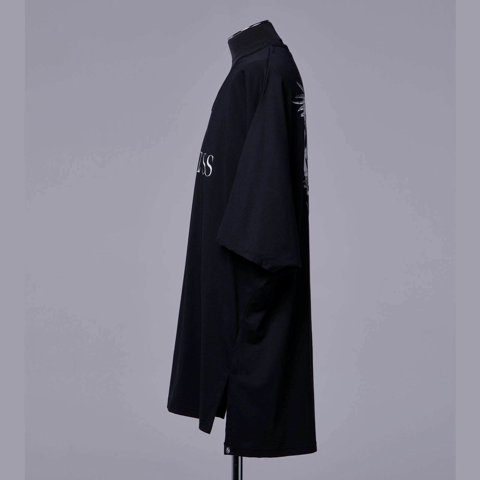 ポンチョ風のゆったりした分量のドルマンスリーブTシャツ。