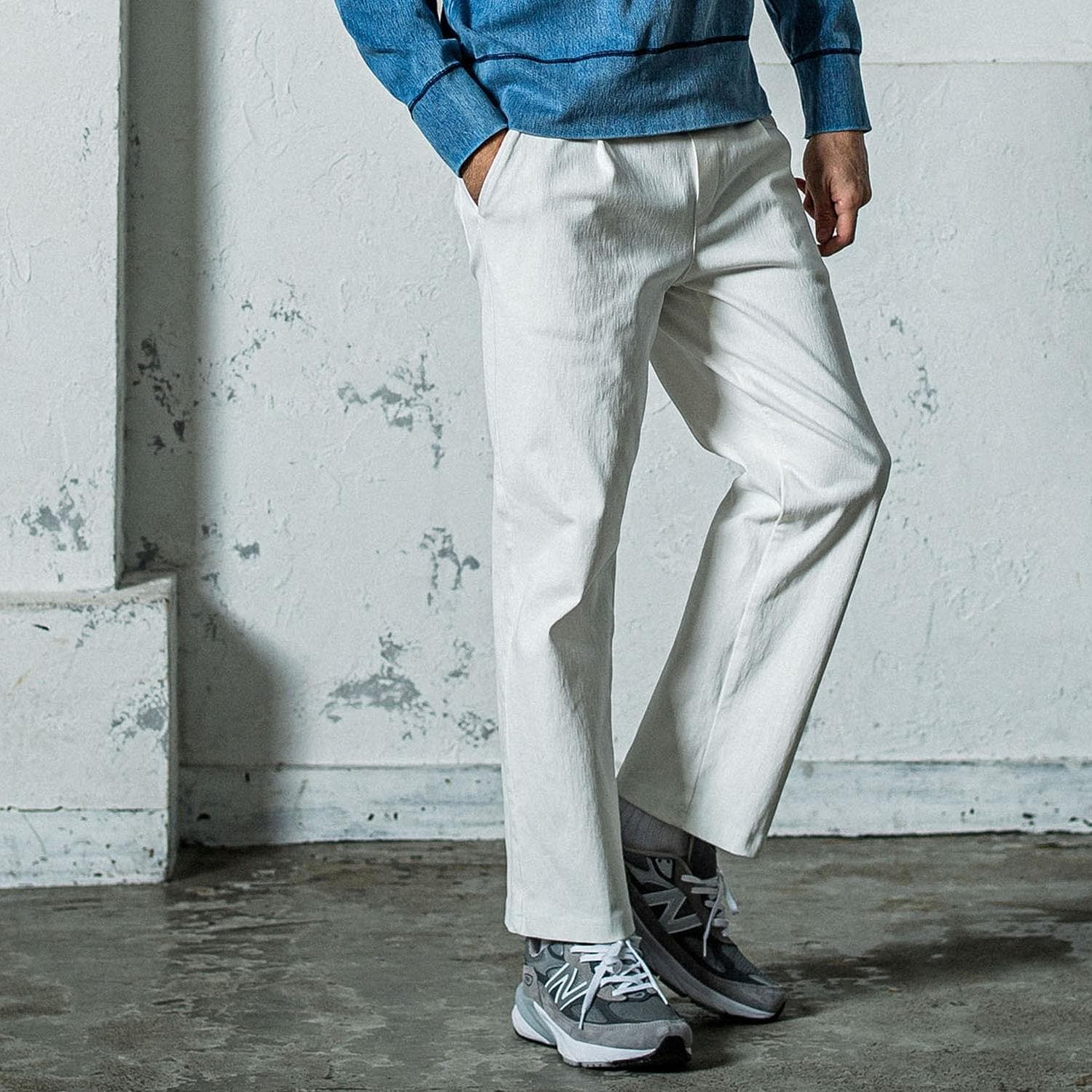 より穿きやすくトレンドを意識したハイブリッドパンツに仕上げました。