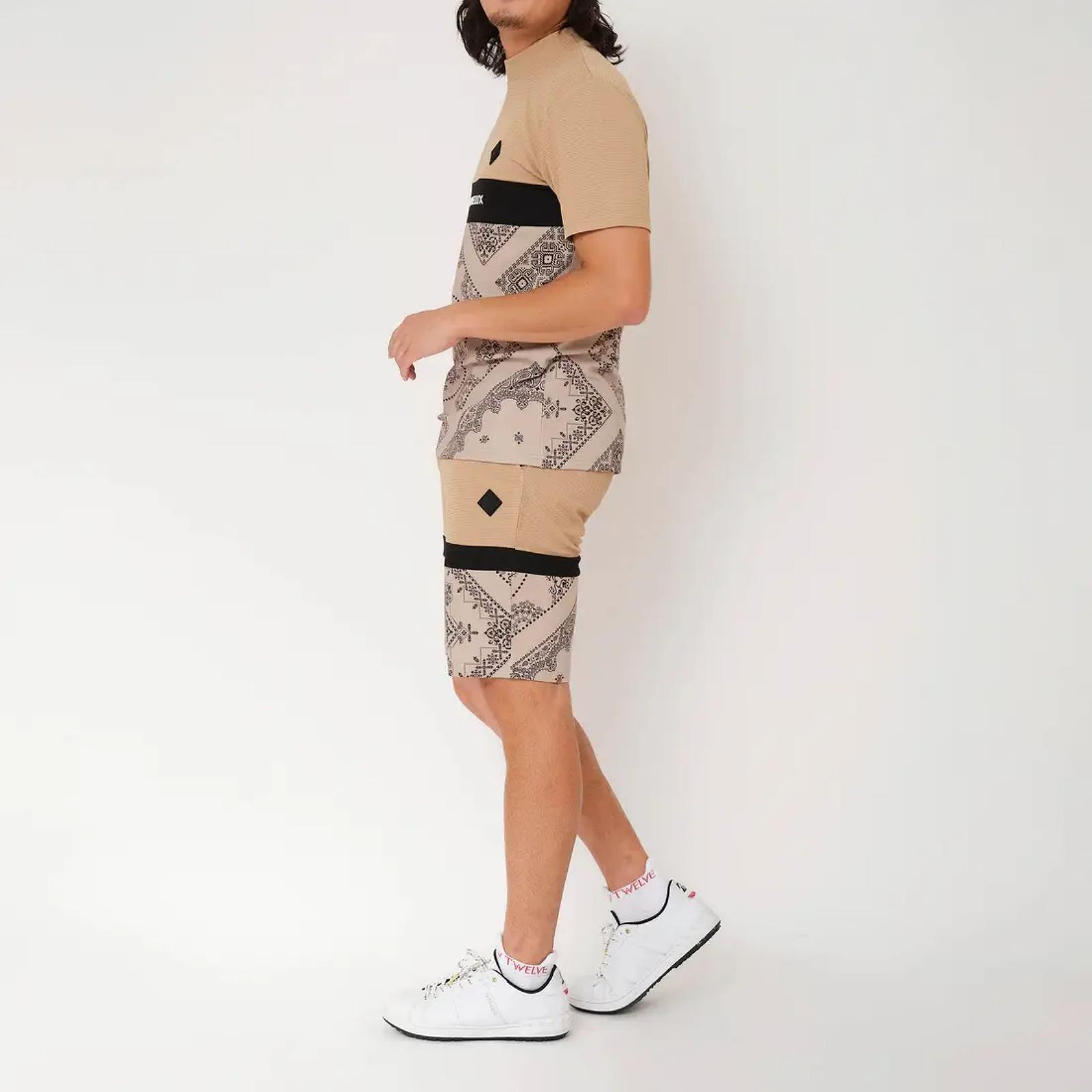 V12(ブィ・トゥエルブ) LX BAN MOCK・メンズ モックネック 吸水速乾/ BEIGE
