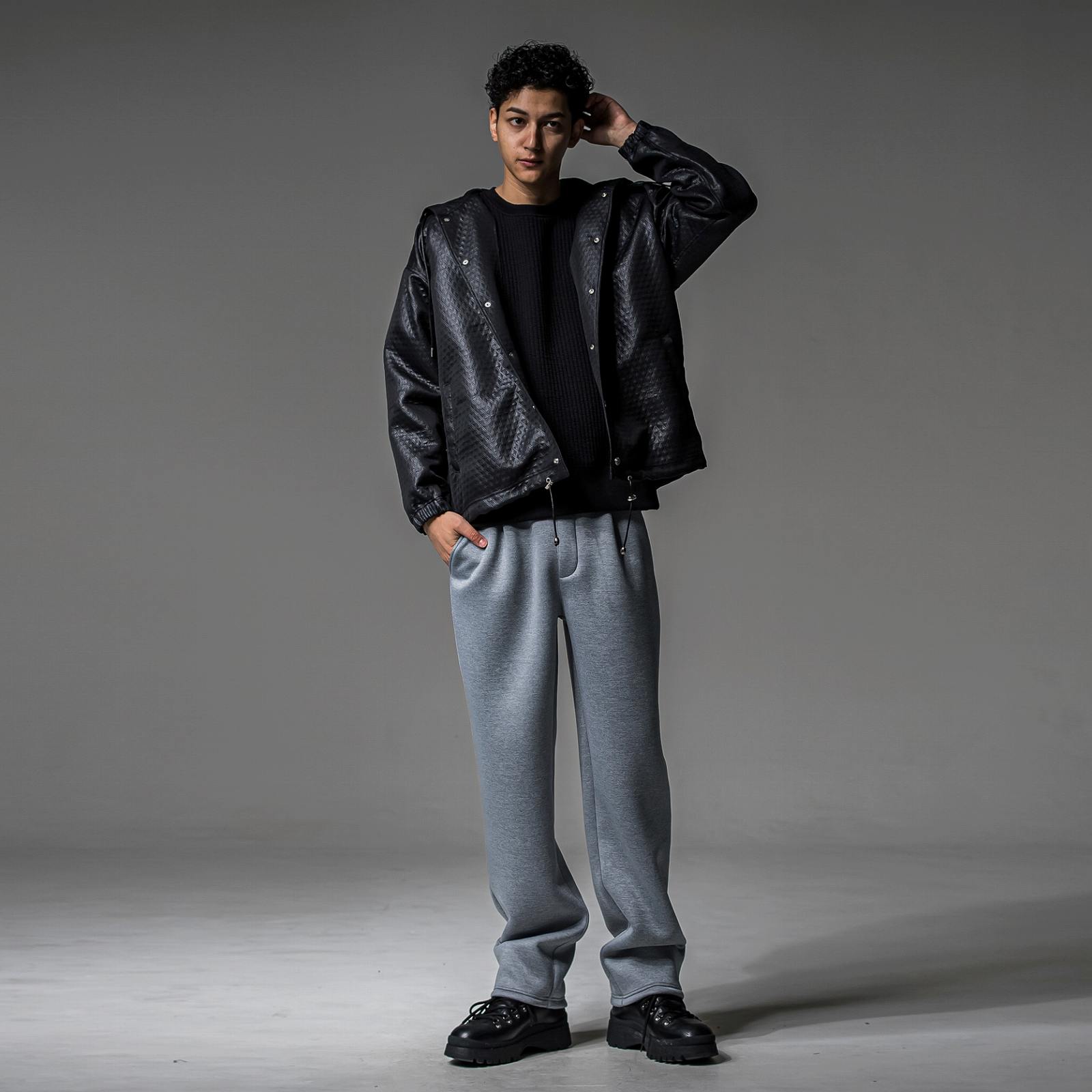ボンディング素材に近いヘビーなダンボールニットを使用した