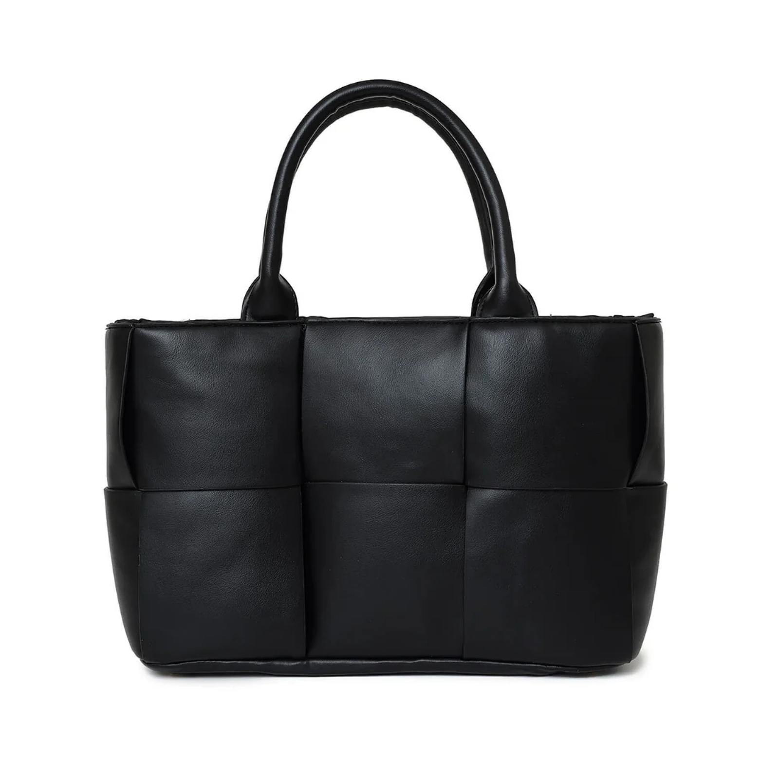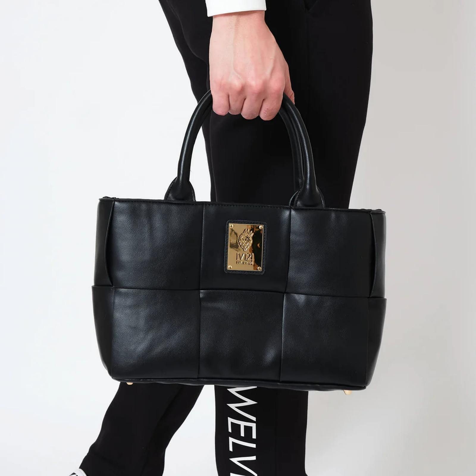 レザーを編み込んだイントレチャートスタイルが特徴のカートバッグ。