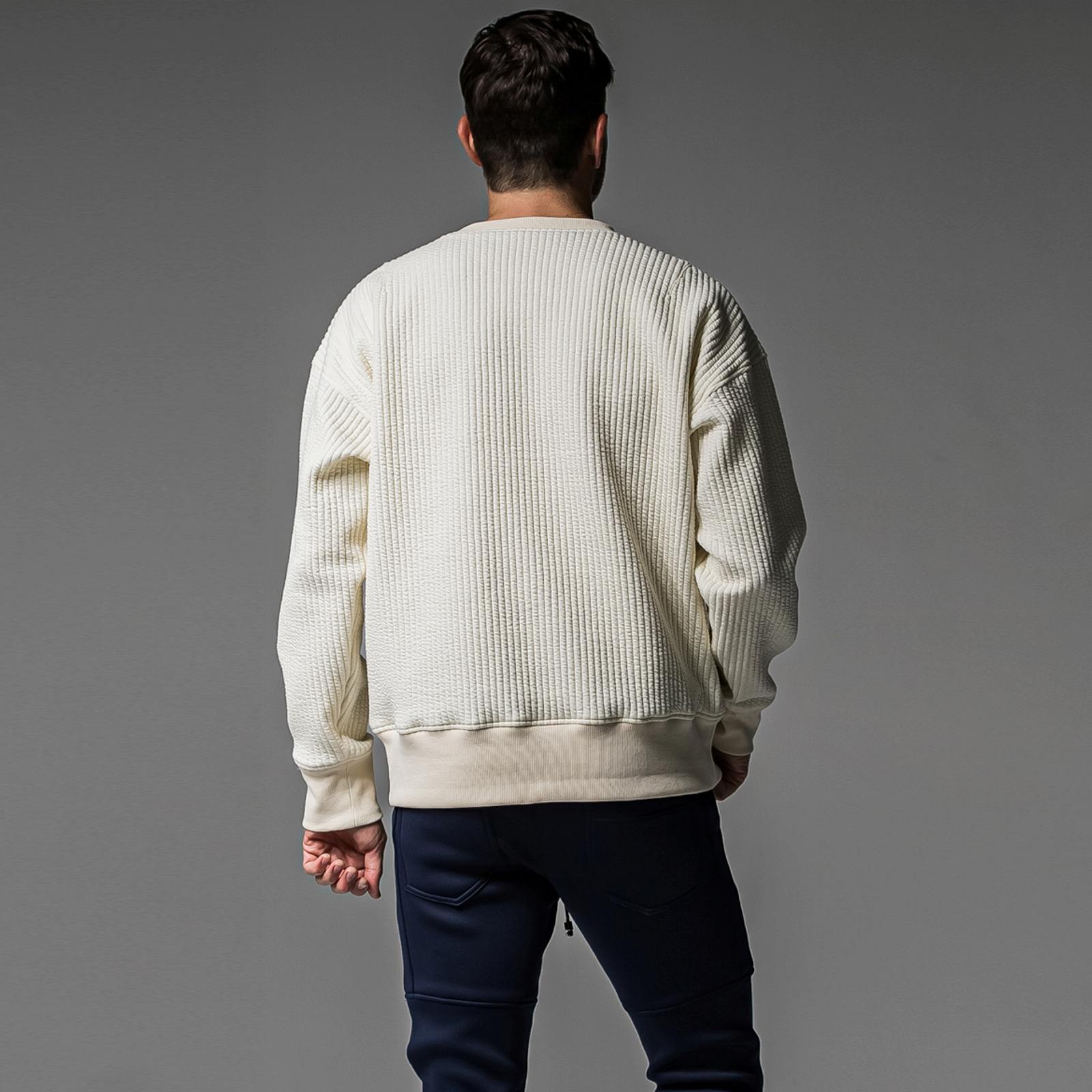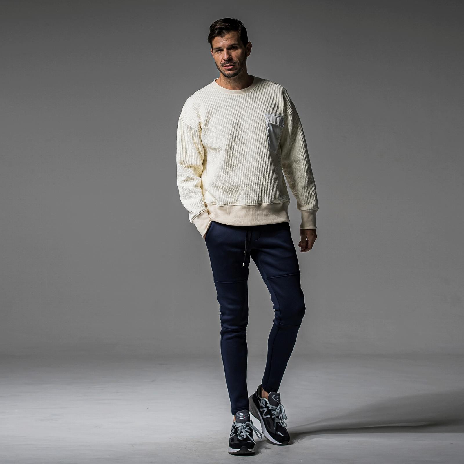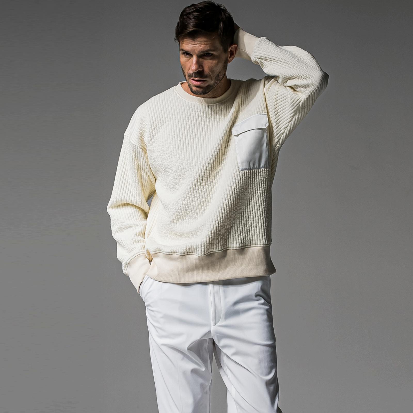 中綿を入れ、キルティングでストライプ柄を表現したストレッチスウェット