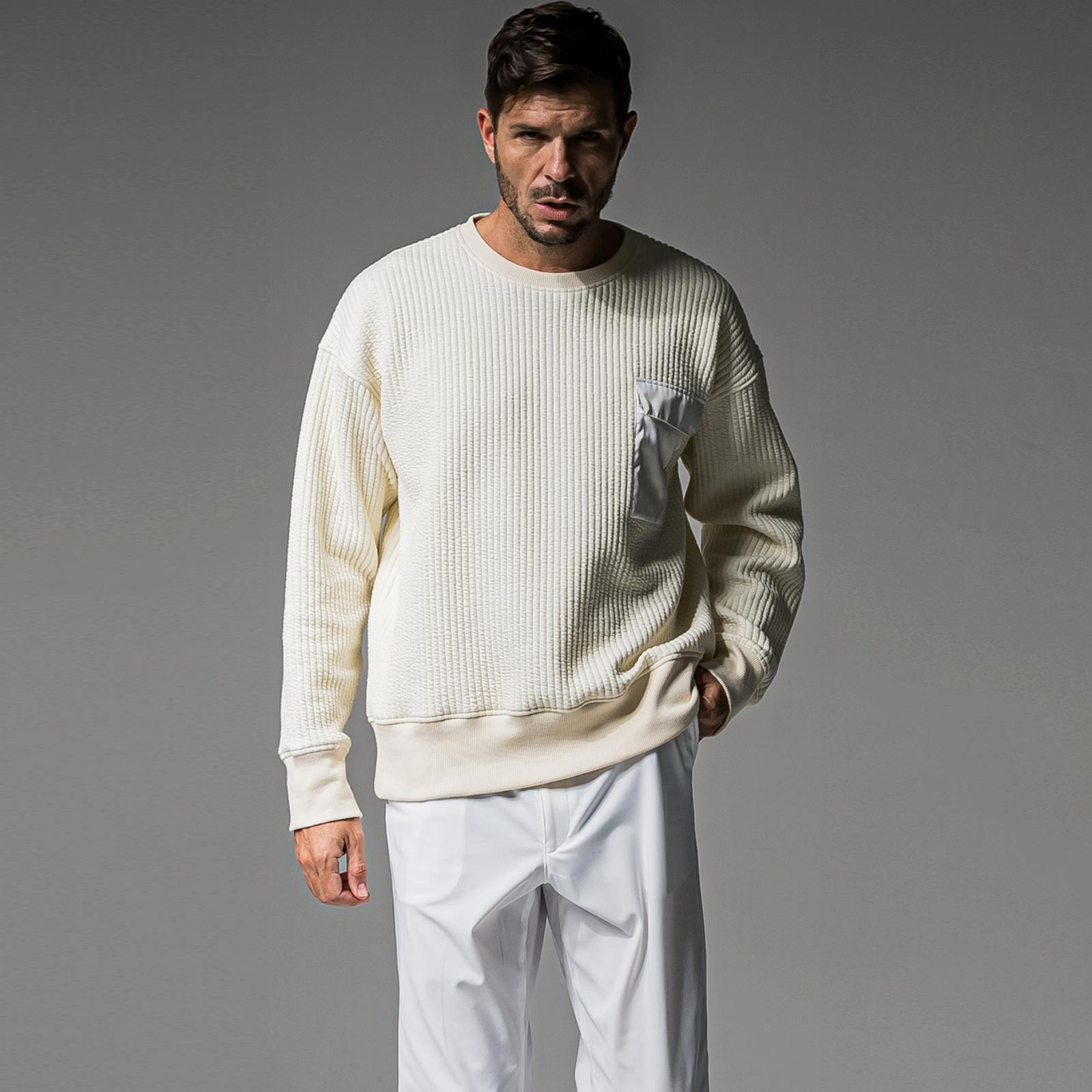 胸にミリタリーフラップポケットをデザイン