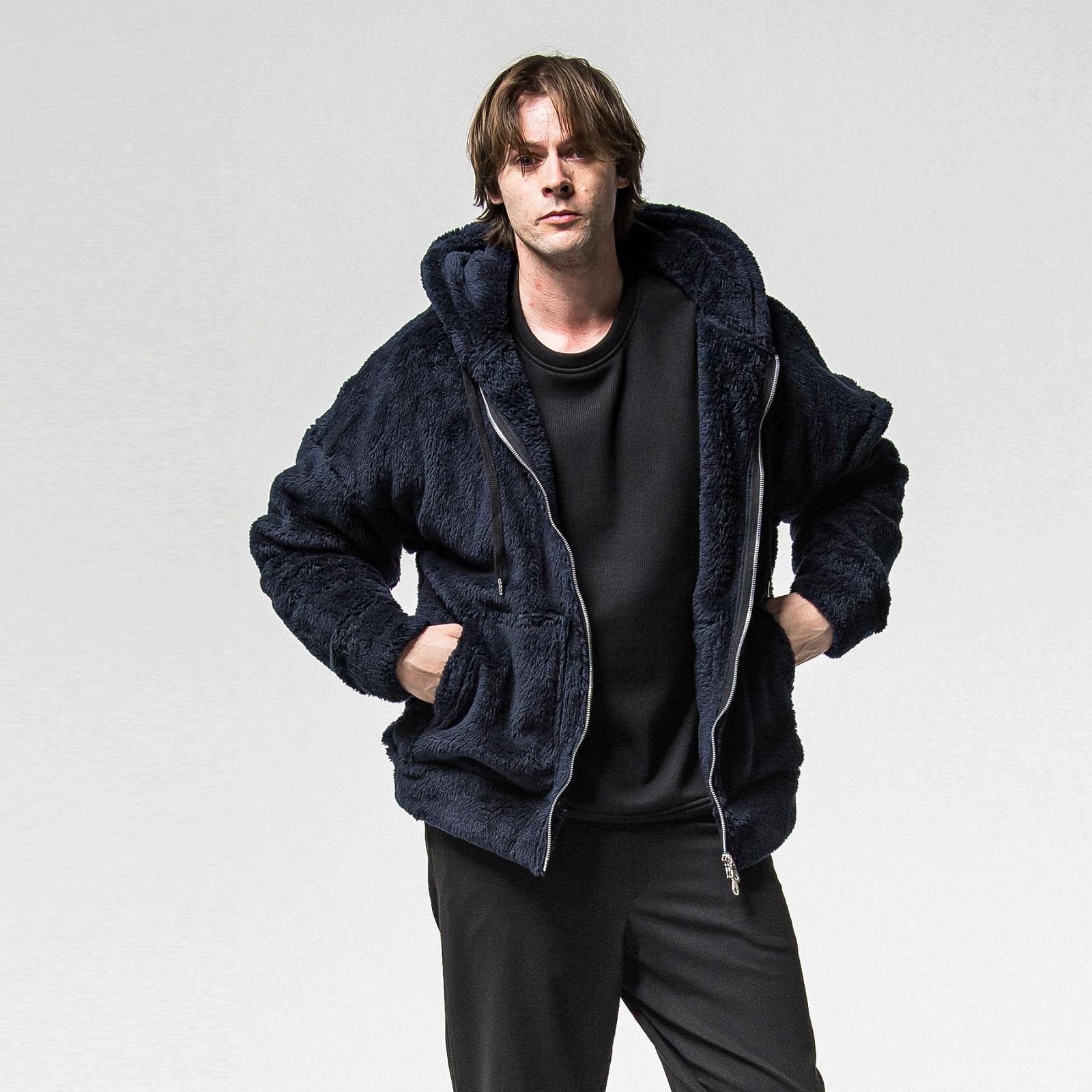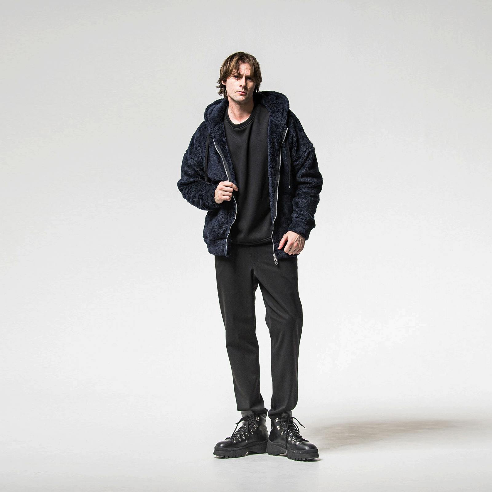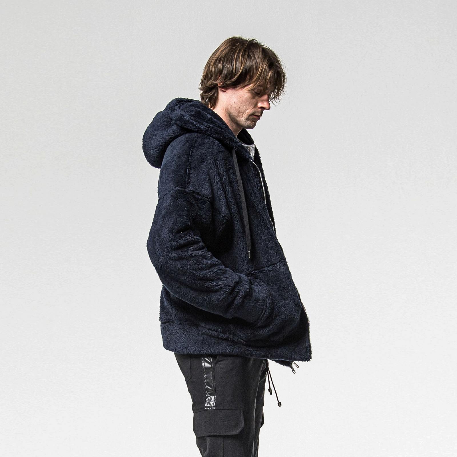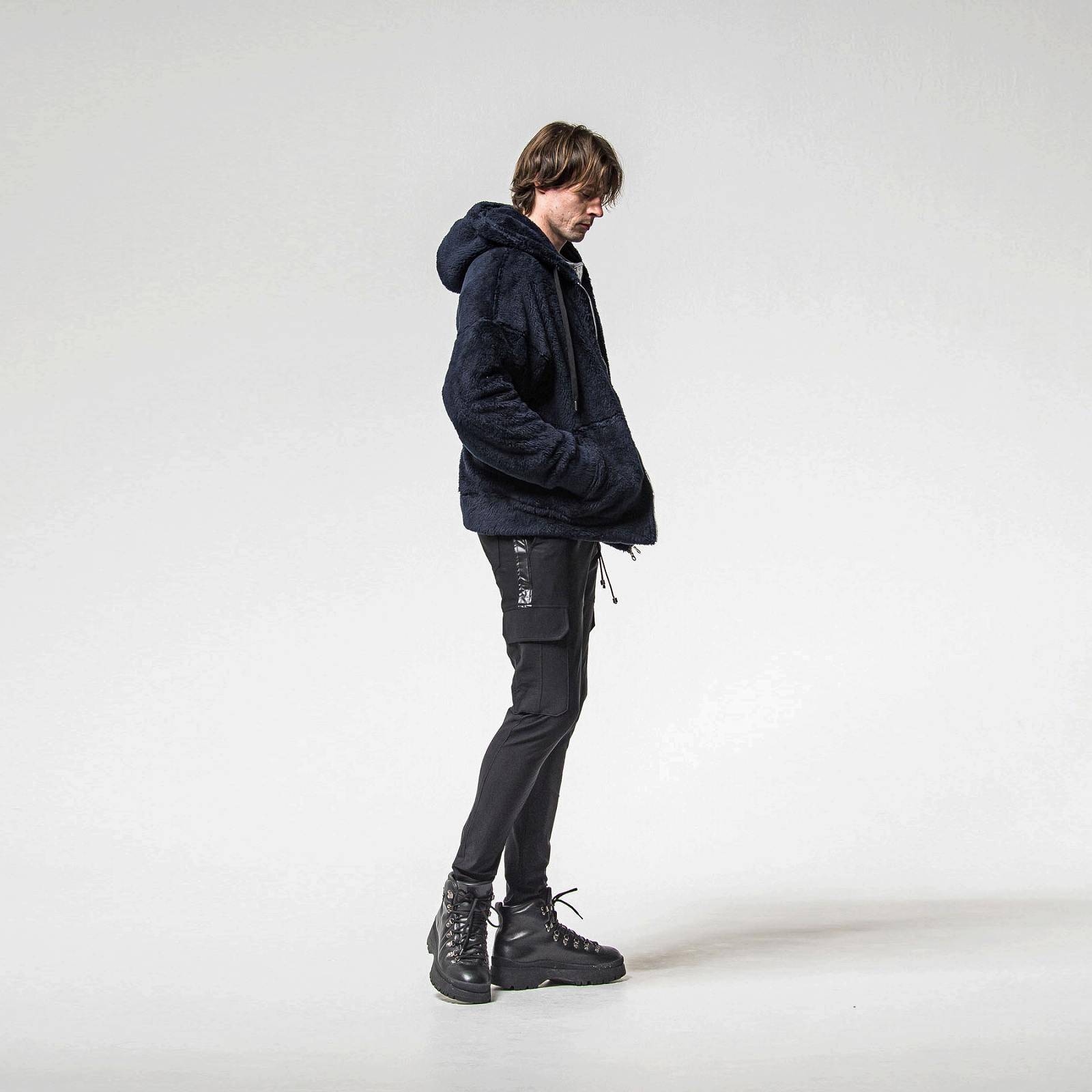 大きなフードとシンプルなサイドパッチポケット