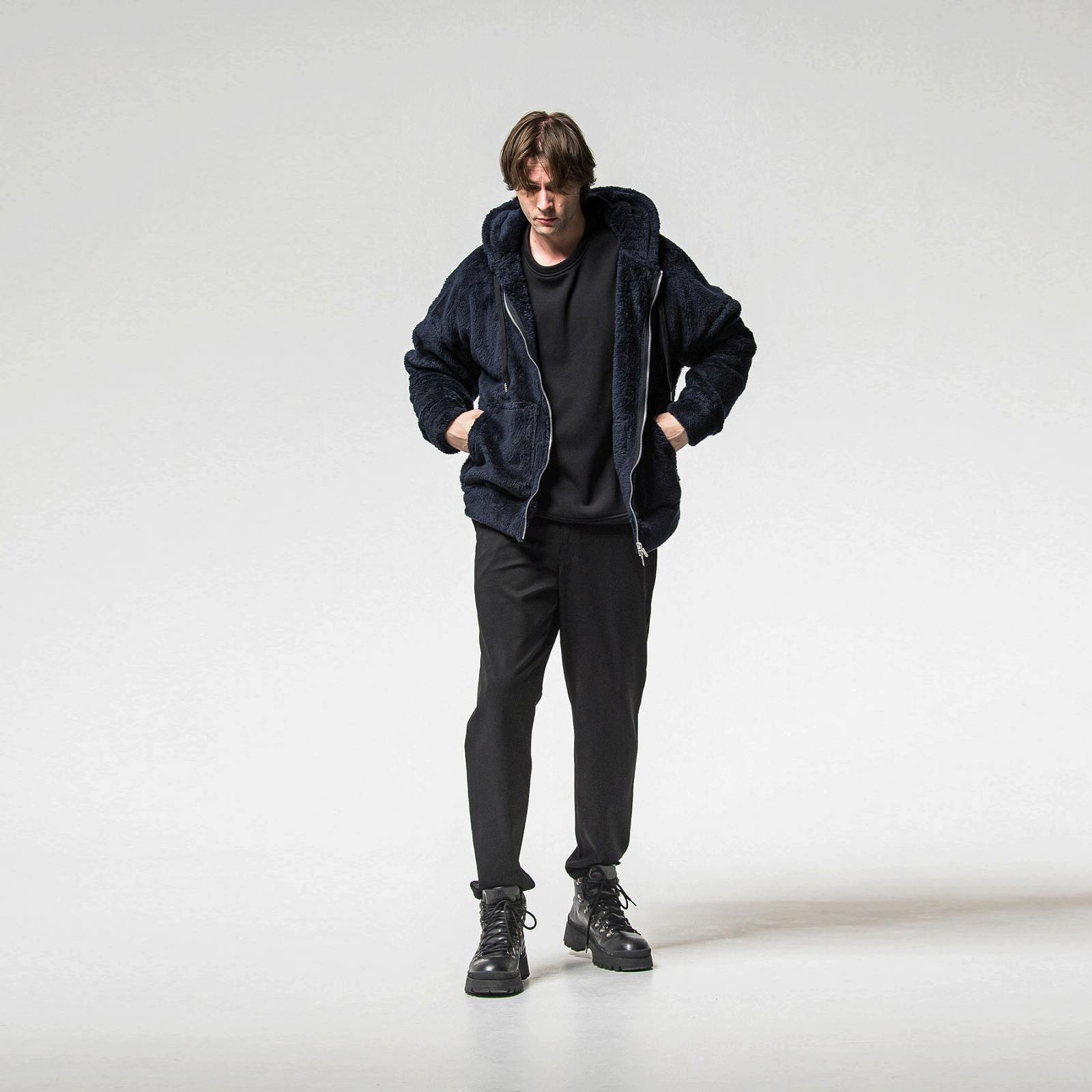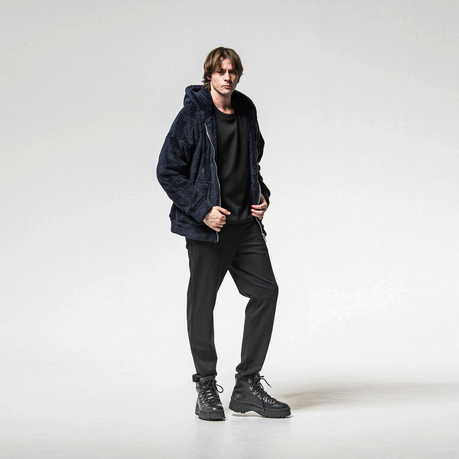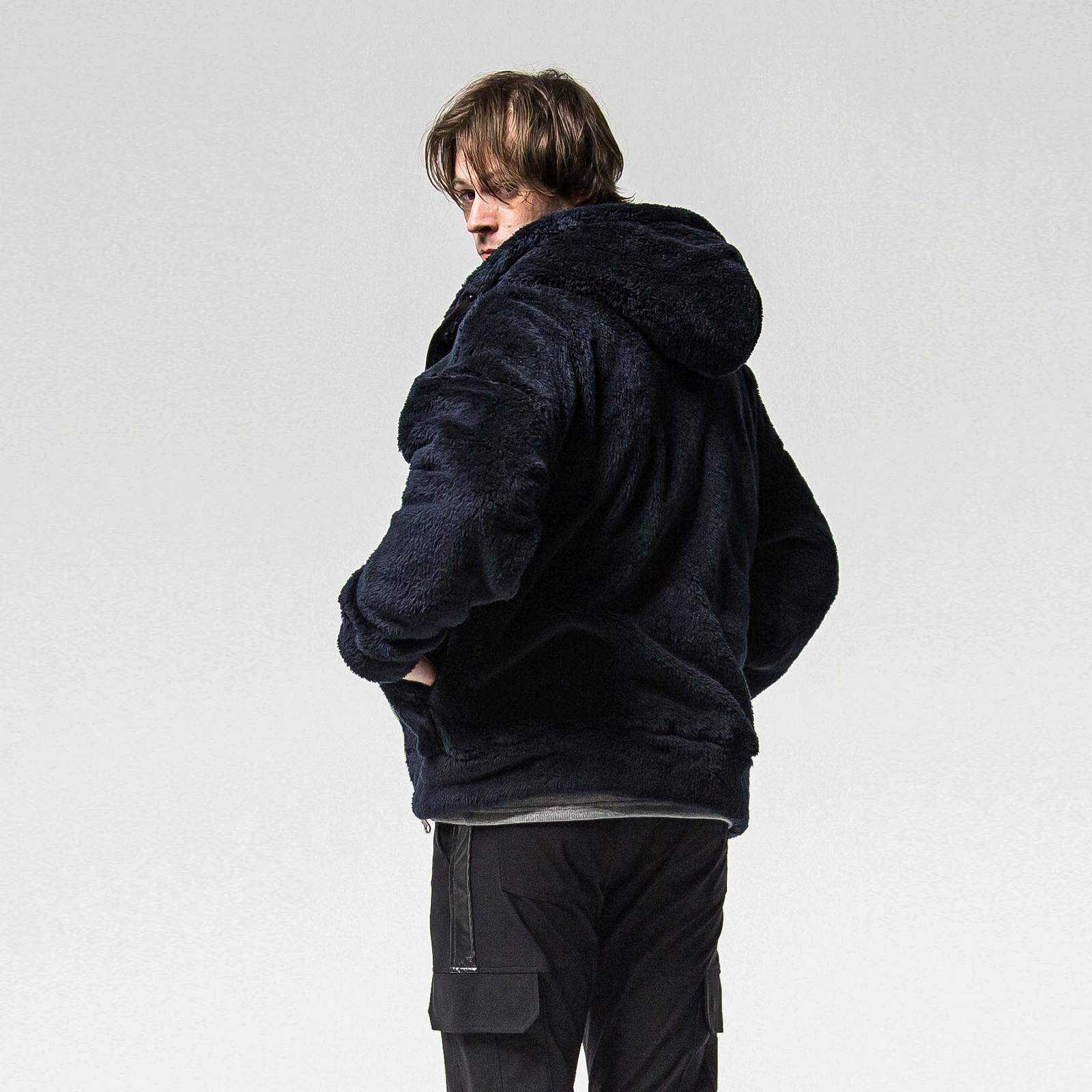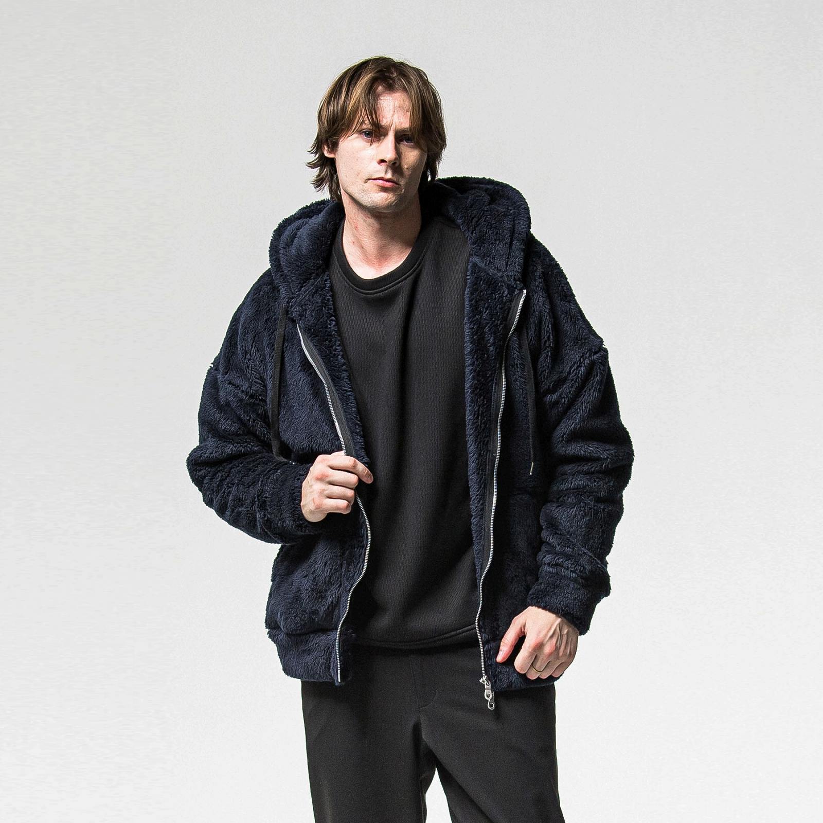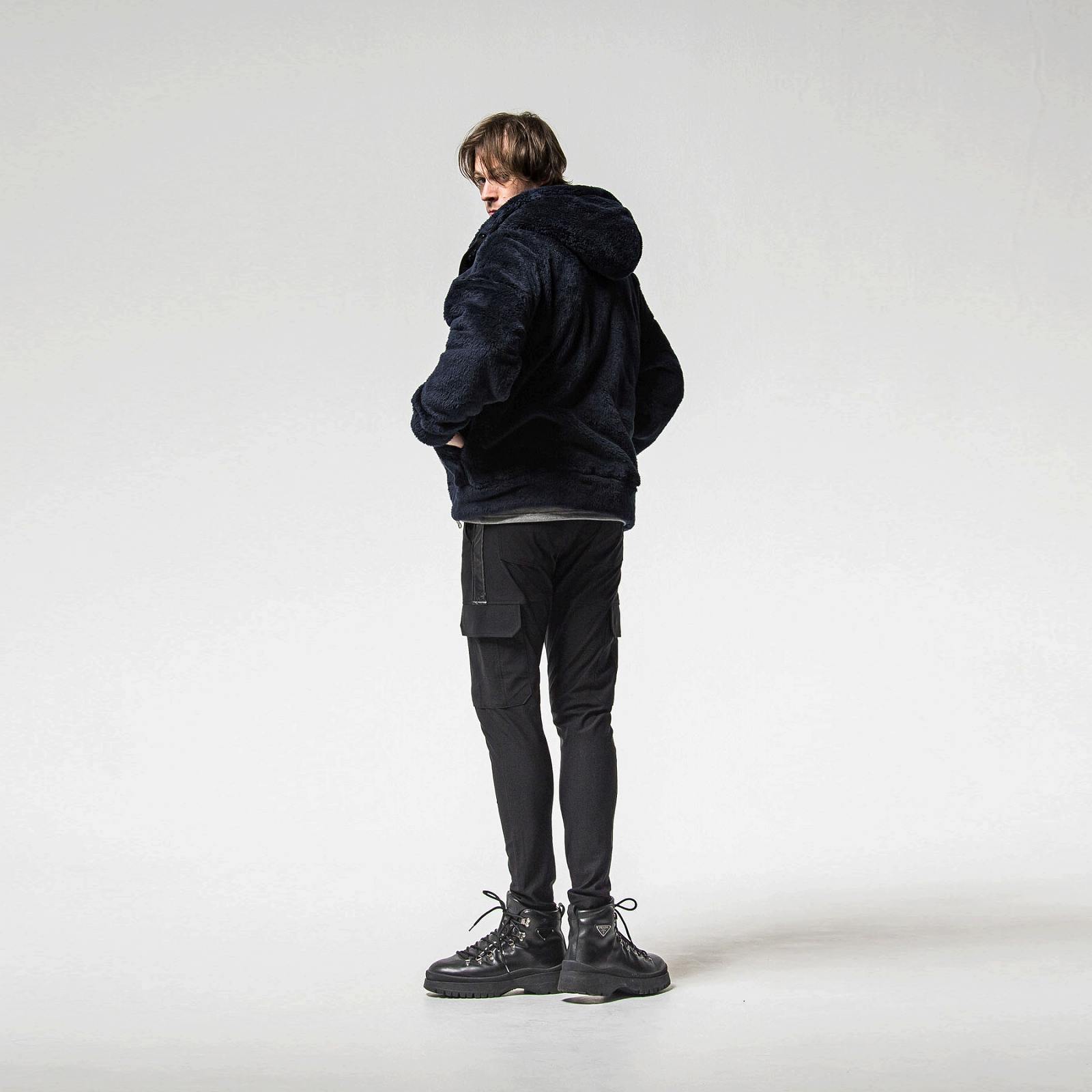 大きなフードとシンプルなサイドパッチポケット
