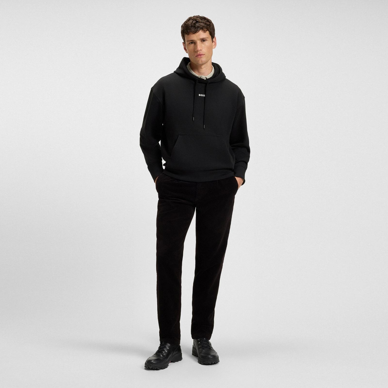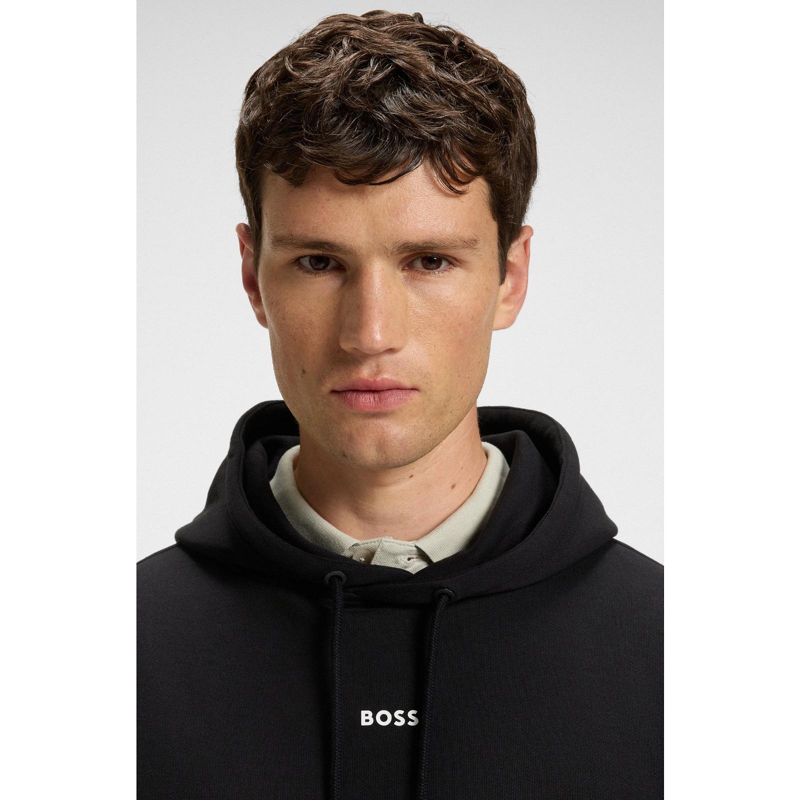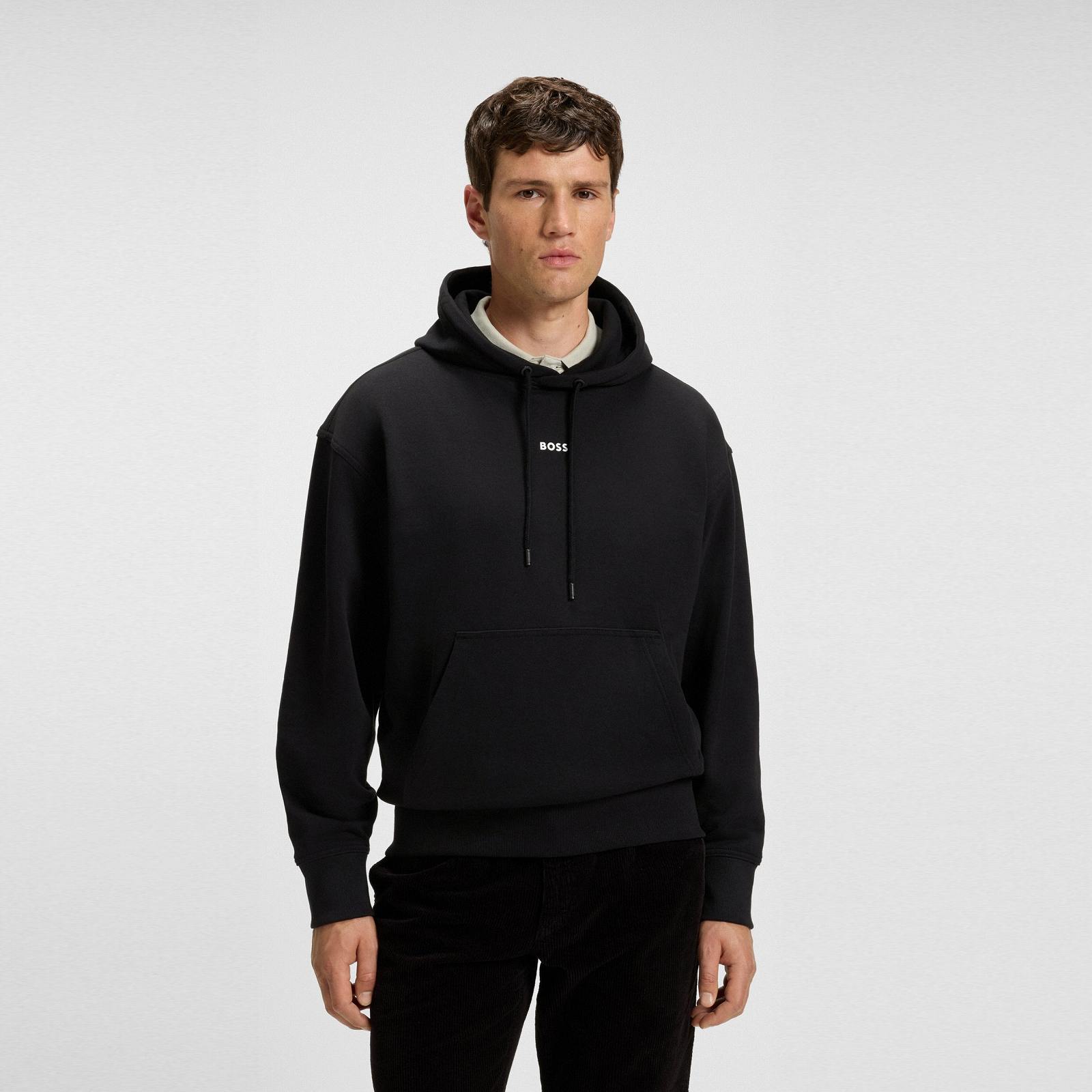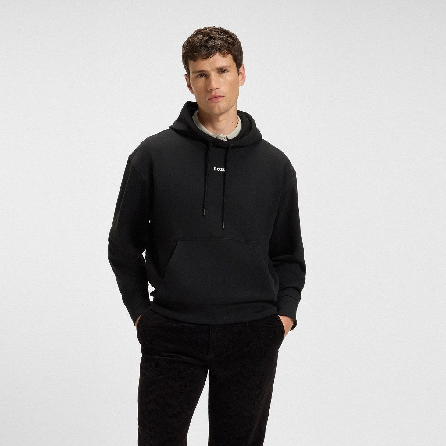 【SALE】BOSS(ボス) フリースフーディ コットンテリー コントラストロゴ/BLACK