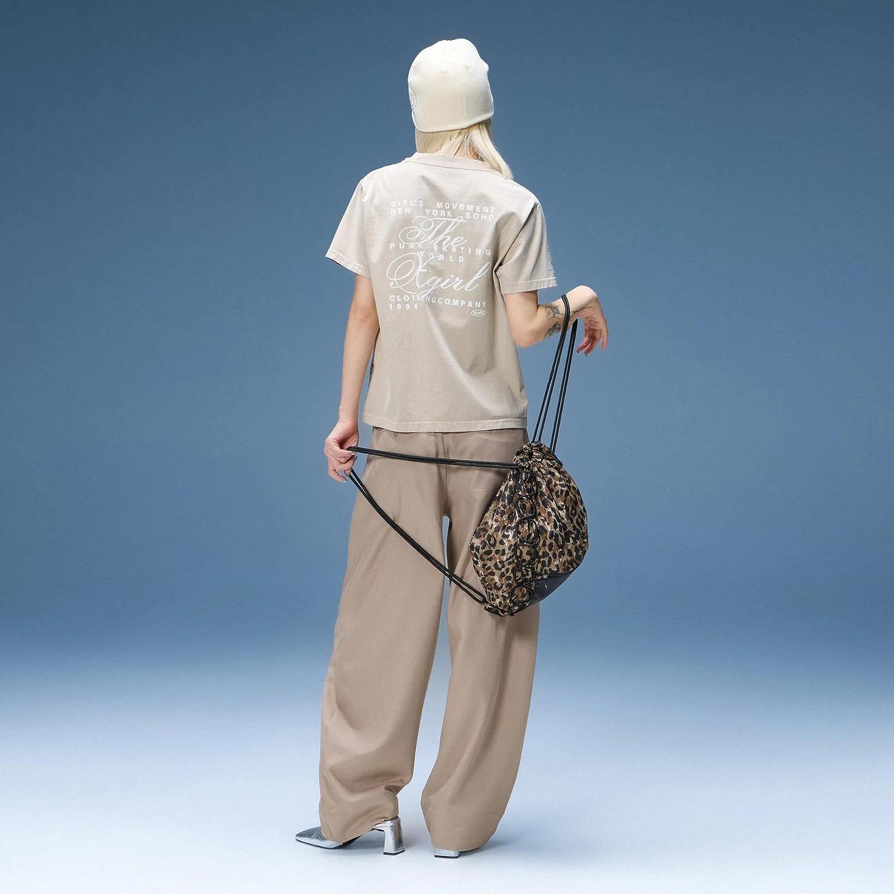 フロントにはX-girl定番のFACEロゴ織りネームを配置。